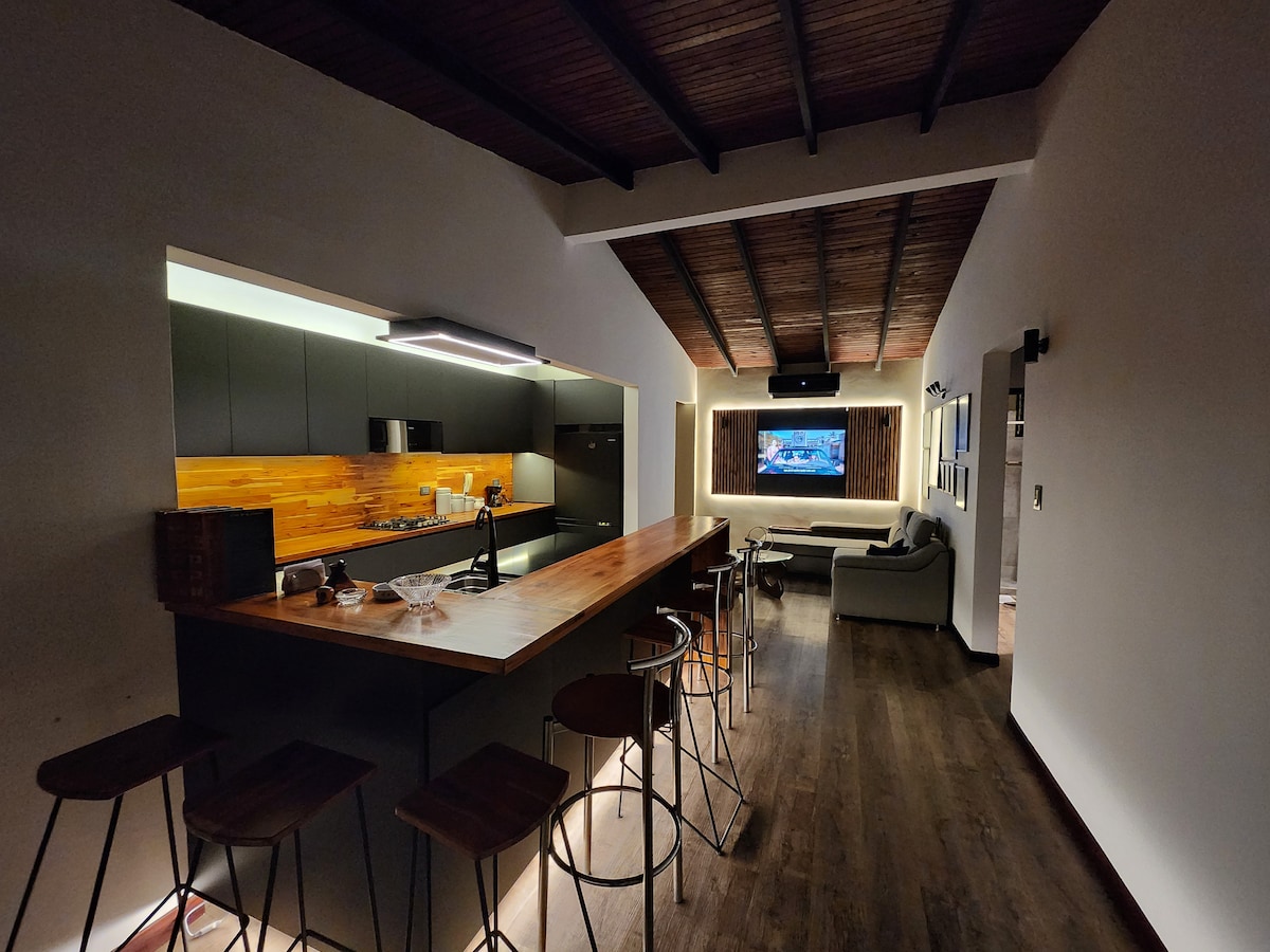 En la mejor zona de la ciudad este apartamento a estrenar garantiza las mejores vacaciones familiares o reuniones de trabajo. 2 habitaciones cuidadosamente equipadas, con aire acondicionado y Smart TV. La sala cuenta con balcón y desde tu escritorio podras ver la Sierra Nevada con WiFi de alta velocidad. La cocina brinda todo lo necesario para sentirte un chef. El edificio tiene planta eléctrica y tanque de agua. Vigilancia privada 24/7 para tu seguridad, 2 puestos de estacionamiento techado.