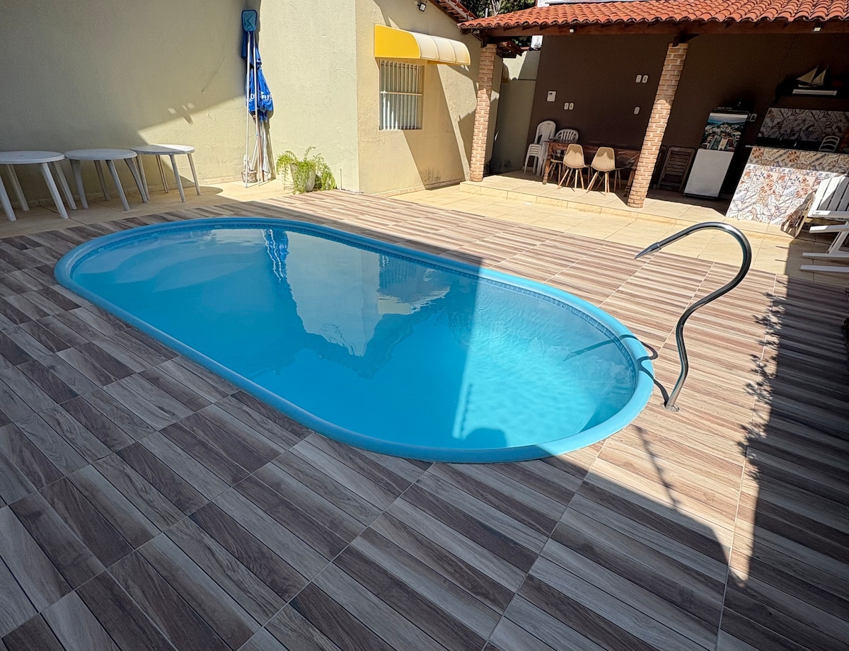 A casa foi projetada com muito carinho, pensando na comodidade de todos da família, optamos por todos os quartos serem suítes. Apesar da casa ser relativamente pequena todos os cômodos são bem divididos. Dispõem de três suítes, todas com ar-condicionado e chuveiro elétrico. A varanda é um ótimo local para apreciar a paisagem na rede. A cozinha americana toda equipada e integrada com a sala de jantar e sala de estar. A casa dispõe de um lavabo. E o chuveirão no terraço é ótimo para refrescar.