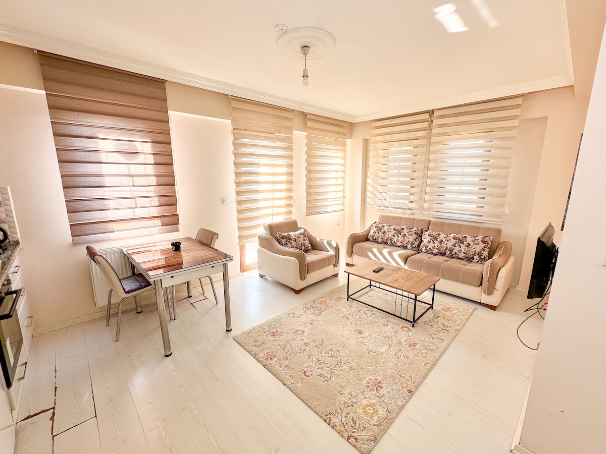 It's a flat near by the Amasra Beach. We have terrace at the backyard. Beach is just 5 meters away from us. Equipped kitchen is ready and waiting for you.