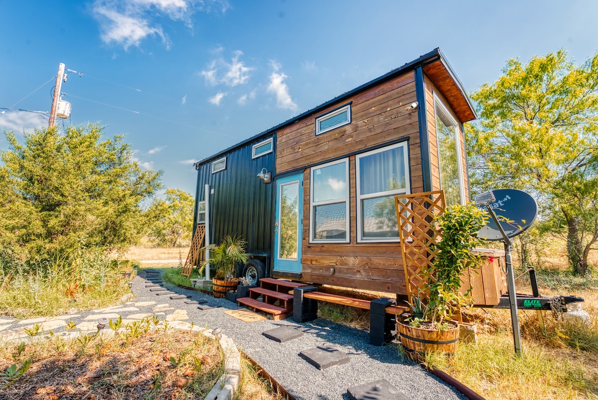 ¡Ven al campo y experimenta la vibrante naturaleza durante el día y las llamativas constelaciones por la noche! La minicasa incluye: Cómoda cama tamaño queen en el loft Cocina totalmente equipada Roku TV con múltiples servicios de streaming + Xbox. Baño completo Fogata + terraza + patio vallado La minicasa se encuentra dentro de nuestra comunidad de Airbnb. La propiedad incluye: Gallinas de corral con huevos en el campo Estanque con peces Arroyo que atraviesa la parte trasera de la propiedad con senderos circundantes 3 lavadoras y secadoras comunitarias.