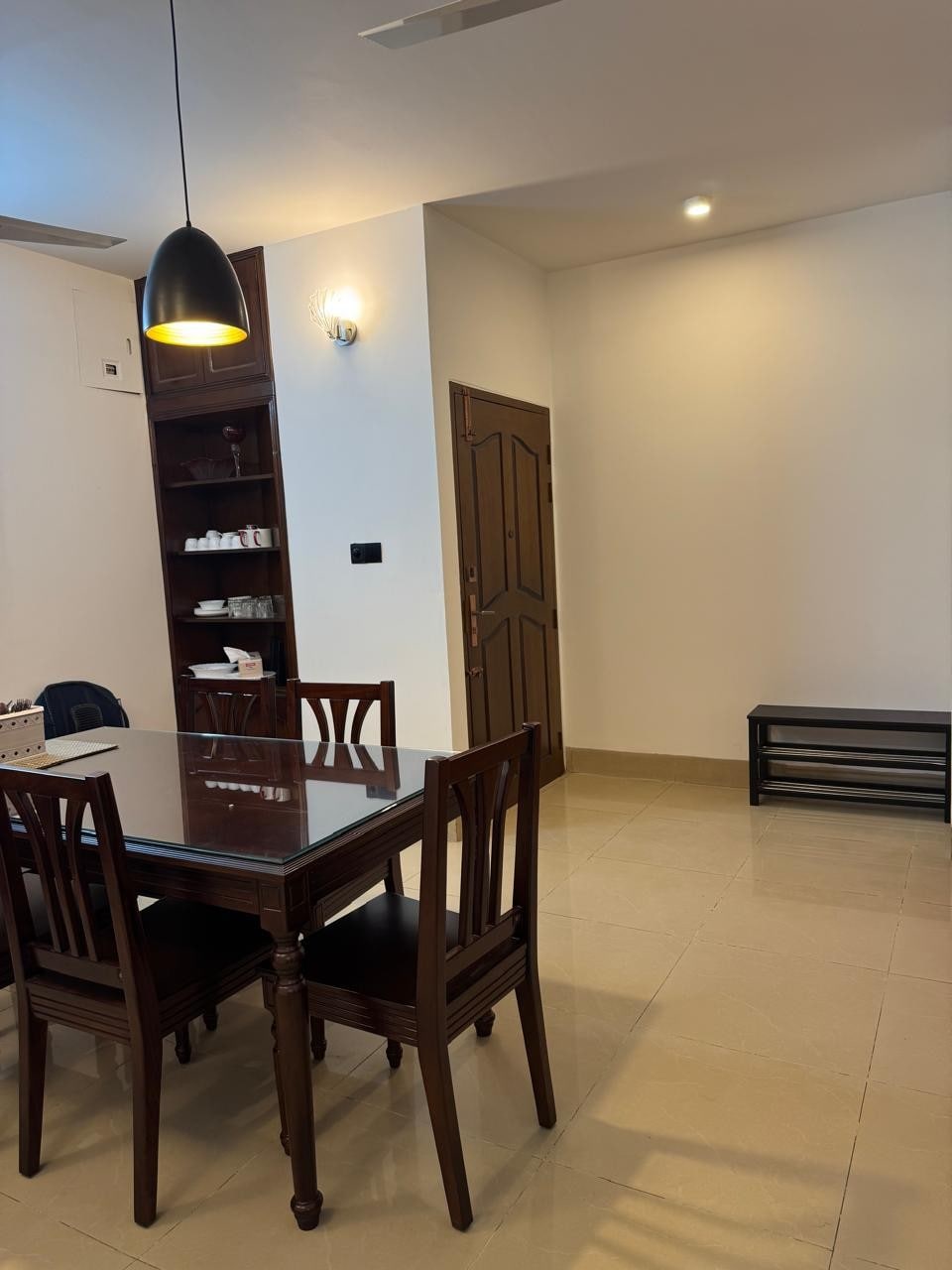 The spacious 1650 sqft apartment is tastefully furnished and decorated with a large living and dining area, three bedrooms with two balconies, three bathrooms, and a fully equipped kitchen. Guests receive complimentary bottled water at check-in; additional water must be purchased. House help can be arranged on request, with costs paid by guests. Located in an upscale area near Jamuna Future Park and Evercare Hospital, with cafes, restaurants, and the airport just 5–15 minutes away.