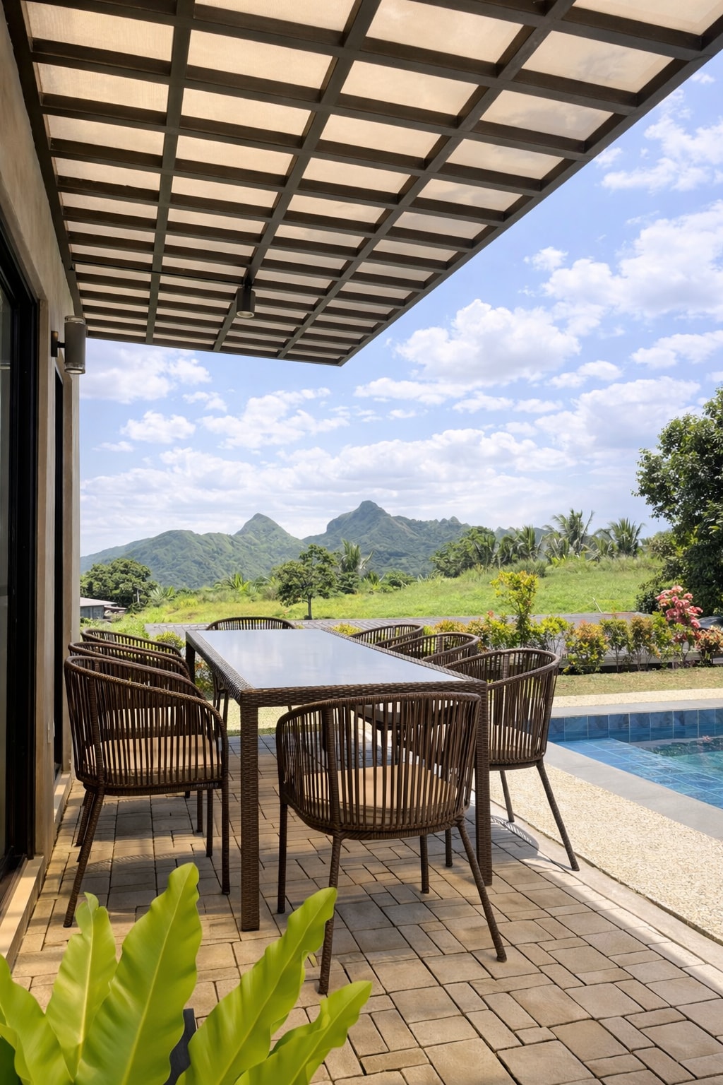 Cabaña en Batangas con vistas a la montaña y piscina
