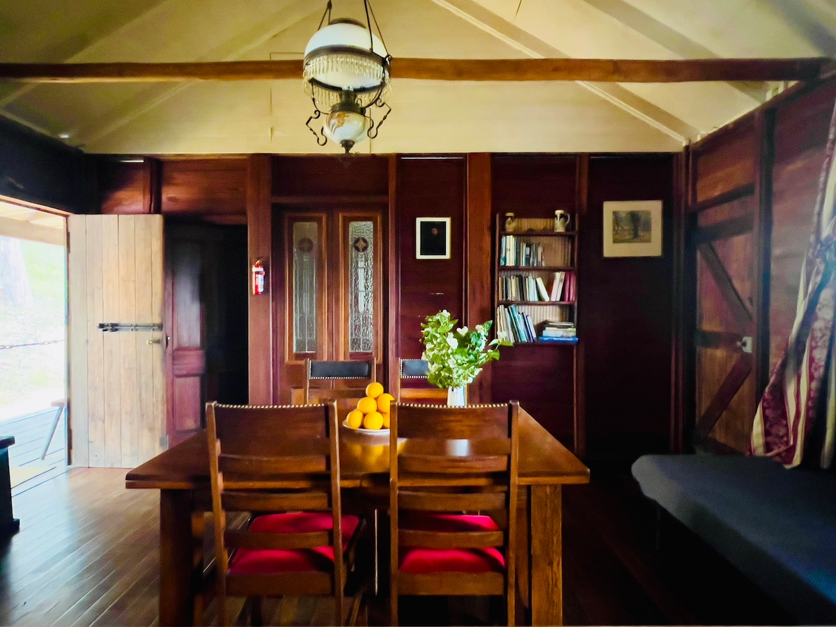 Cool, very spacious and super relaxed retro style cottage. Filled with travel treasures mixed with funky and functional retro stuff. A short drive to all the fabulous beaches, villages and national parks of Jervis Bay. The cottage is set amid towering gums and surrounded by a tropical, edible garden, with an emphasis on permaculture principles, including worm farms and frog ponds. Recycled and re-purposed items have been utilised to create garden art and to make a Byron-meets-Bali feel.