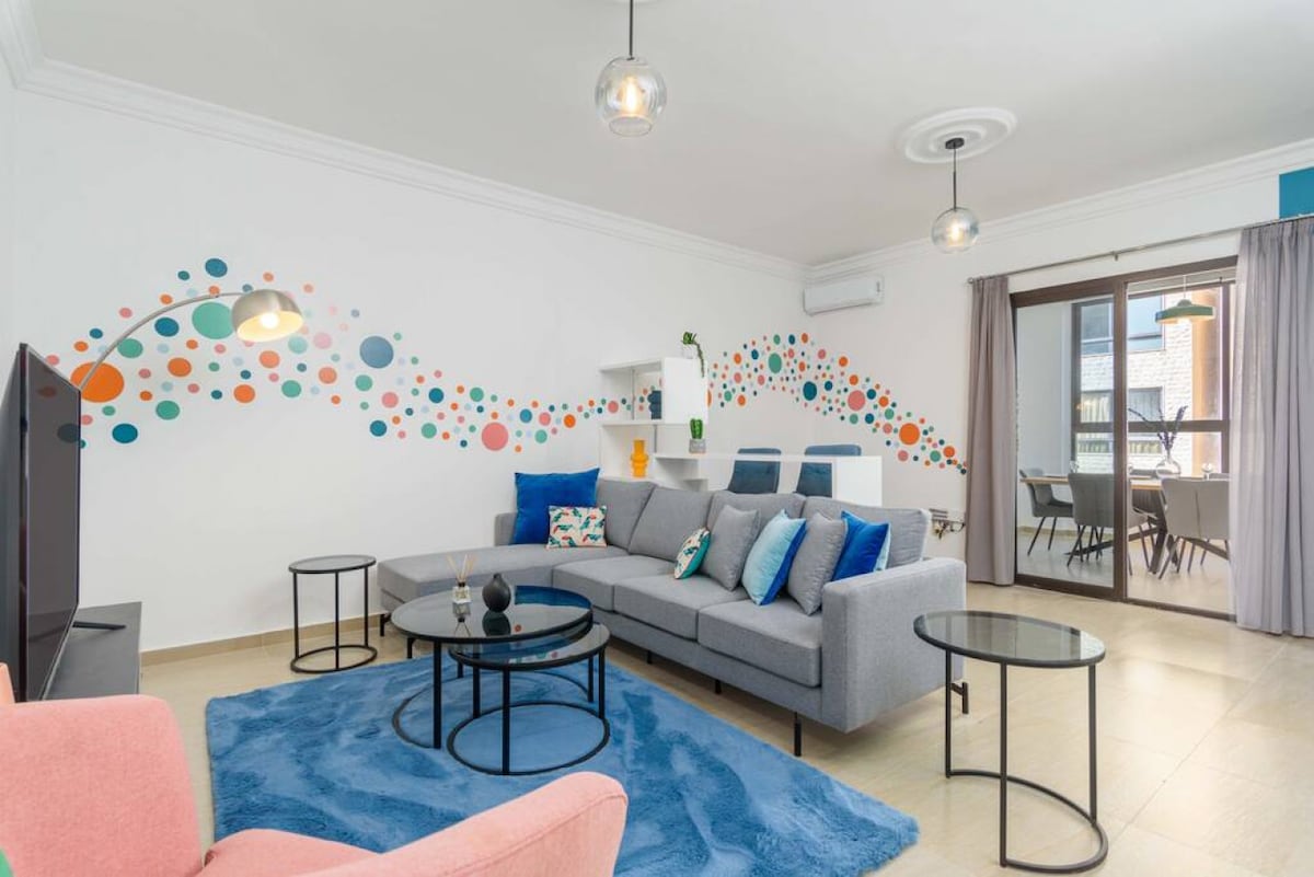 Spacious, cozy new fully furnished apartment in a new building located in the heart of Batroun. 2 min walking distance from the beaches, old souks, festivals & Restaurants. Located in a quiet neighborhood. The place allows full privacy for guests. • 24/7 electricity *Additional rules are applied • Air conditioner/Heater in each room • Oven • Kitchen • Hot water • Washer • Wi-Fi • Smart Tv 60” • Hairdryer& iron available upon request • Free Secured Parking spots • Outdoor furniture • Elevator