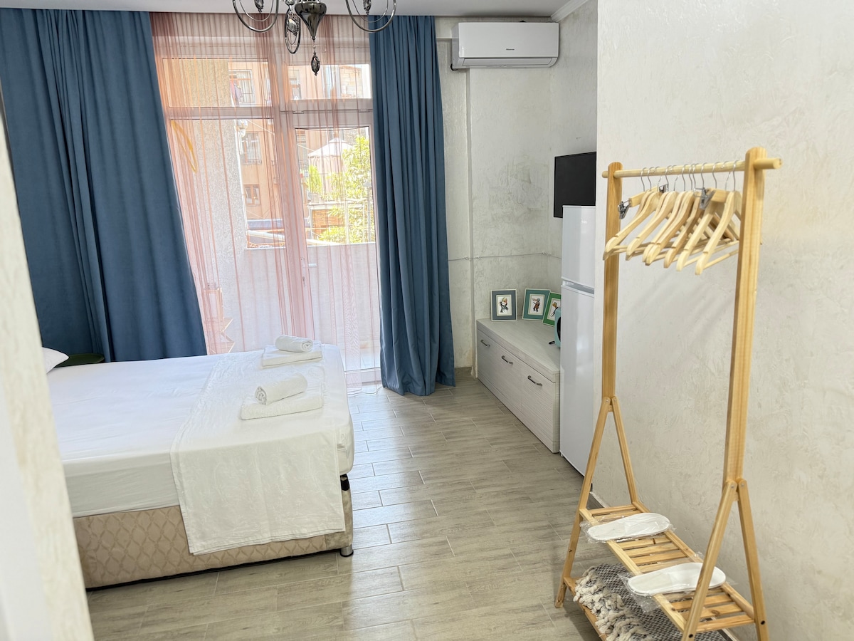 Encantador apartamento de 1 dormitorio y baño en el corazón del Batumi histórico, a 5 minutos a pie de la playa y el bulevar. El apartamento se encuentra frente a la entrada central del parque 6 de Mayo. La unidad incluye nevera, aire acondicionado, lavadora, plancha y secador de pelo. Aparcamiento gratuito en la calle. Puedes visitar fácilmente a pie los lugares de interés de la ciudad histórica, restaurantes, boutiques y mercados de comida local. El anfitrión está abierto a responder a todas tus preguntas en inglés, ruso y turco.