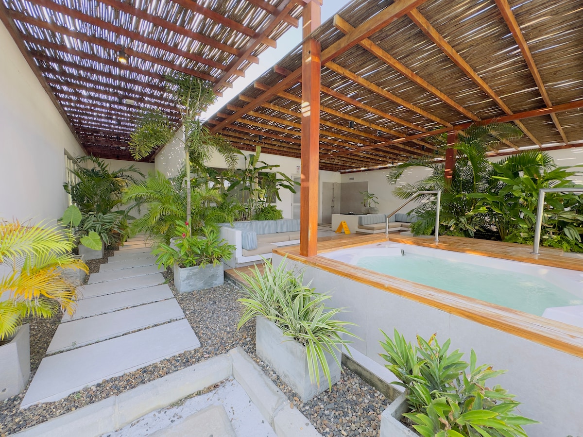 Jacuzzi privado con vista a la laguna, a pasos de la playa