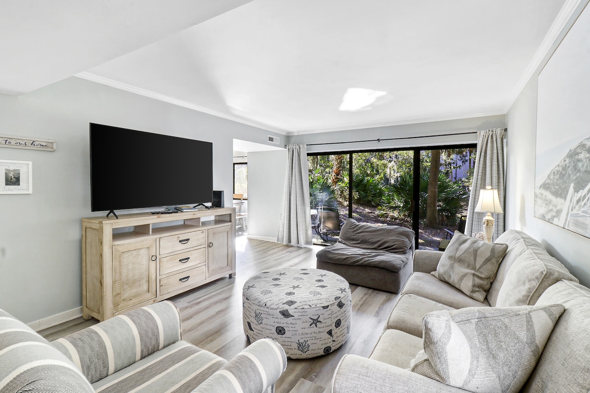 Amplio refugio de estilo casa adosada a solo cinco minutos de la playa en la relajante isla Hilton Head. Esta ubicación es difícil de igualar: el barrio incluye muchas tiendas, restaurantes y opciones de entretenimiento cerca (con un cine y cocina internacional literalmente al otro lado de la calle), así como canchas de tenis y campos de golf en la zona. Un cómodo sendero para bicicletas pasa justo al lado de nuestra puerta y te llevará a la playa en diez minutos. Relájate, refréscate, recarga... ¡diviértete aquí!
