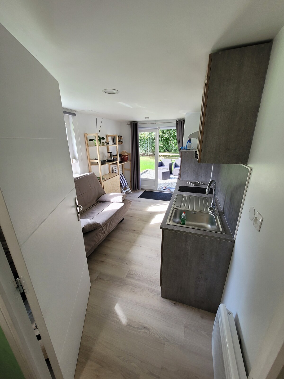 Le ofrecemos nuestra pequeña casa de huéspedes de 30 m2 en la parte inferior del jardín, con todas las comodidades: dormitorio con cama de 140, baño con ducha, cocina equipada, pequeña sala de estar con sofá cama. Ideal para 2-3 personas. ¡Atención! Estamos en modo Tiny House, el techo no es muy alto, ¡complicado para personas de más de 1,95 m! Tiene una hermosa terraza con barbacoa y Mollkye, sin vecinos. Pongo a su disposición té y café para su llegada, la cama estará hecha.