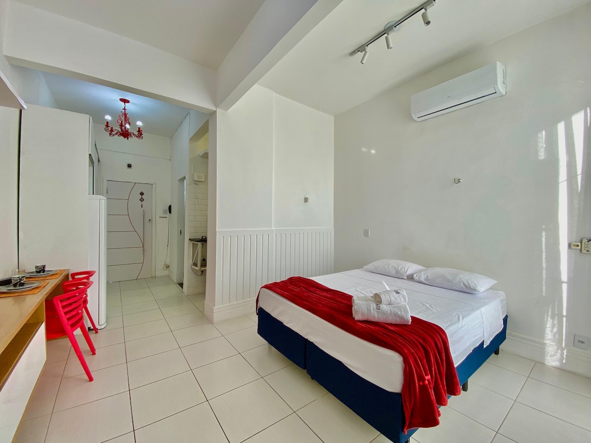 Perfecto para parejas y viajeros, este moderno loft en un edificio nuevo cuenta con: ✅ ** Cama TAMAÑO KING ** (sábanas de primera calidad) ✅ **Piscina, gimnasio, zona de barbacoa y terraza panorámica ** ✅ ** Wifi ultrarrápido ** (fibra óptica) y **SmartTV con Netflix** ✅ **Cocina totalmente equipada**, lavadora y aire acondicionado ✅ ** Artículos de aseo gratuitos** y artículos básicos proporcionados Ubicación tranquila en **Blue Building (Rua dos Caripunas 1016)** – ¡ideal para relajarse o trabajar a distancia!