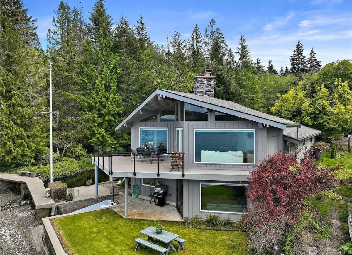 Perched right on the shoreline, this Hood Canal retreat is so close to the water that at high tide, it feels like you're floating. With 180-degree unobstructed views, warm swimmable waters, and direct beach access, this is the ultimate Pacific Northwest escape. Wake up to the calls of seabirds, sip your coffee on the deck as seals and otters glide by, then spend your day kayaking or harvesting fresh shellfish. Relax with an evening cocktail in hand—this is what waterfront dreams are made of.