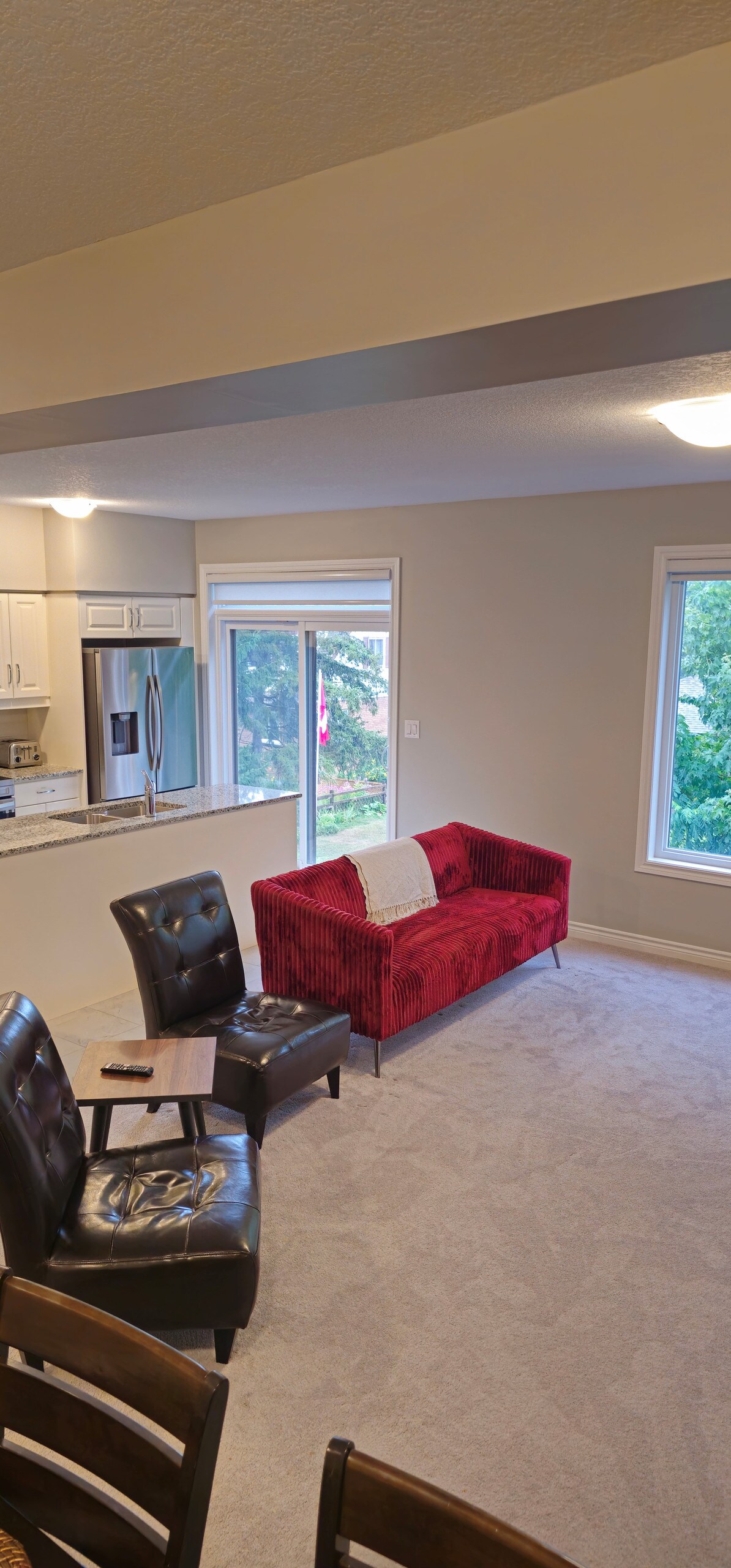 Bienvenido a nuestro encantador apartamento de segunda planta en el centro de Midland, Ontario. Este acogedor espacio cuenta con un dormitorio, una oficina con futón, cocina completa, baño, lavandería y una luminosa sala de estar de concepto abierto. Disfruta de fácil acceso a tiendas, restaurantes y lugares de interés locales. Explora el pintoresco paseo marítimo y las rutas de senderismo cercanas. Refúgiate en este cómodo y acogedor apartamento después de un día de trabajo o juego. Reserva tu alojamiento hoy mismo para disfrutar de una experiencia cómoda y memorable en Midland.