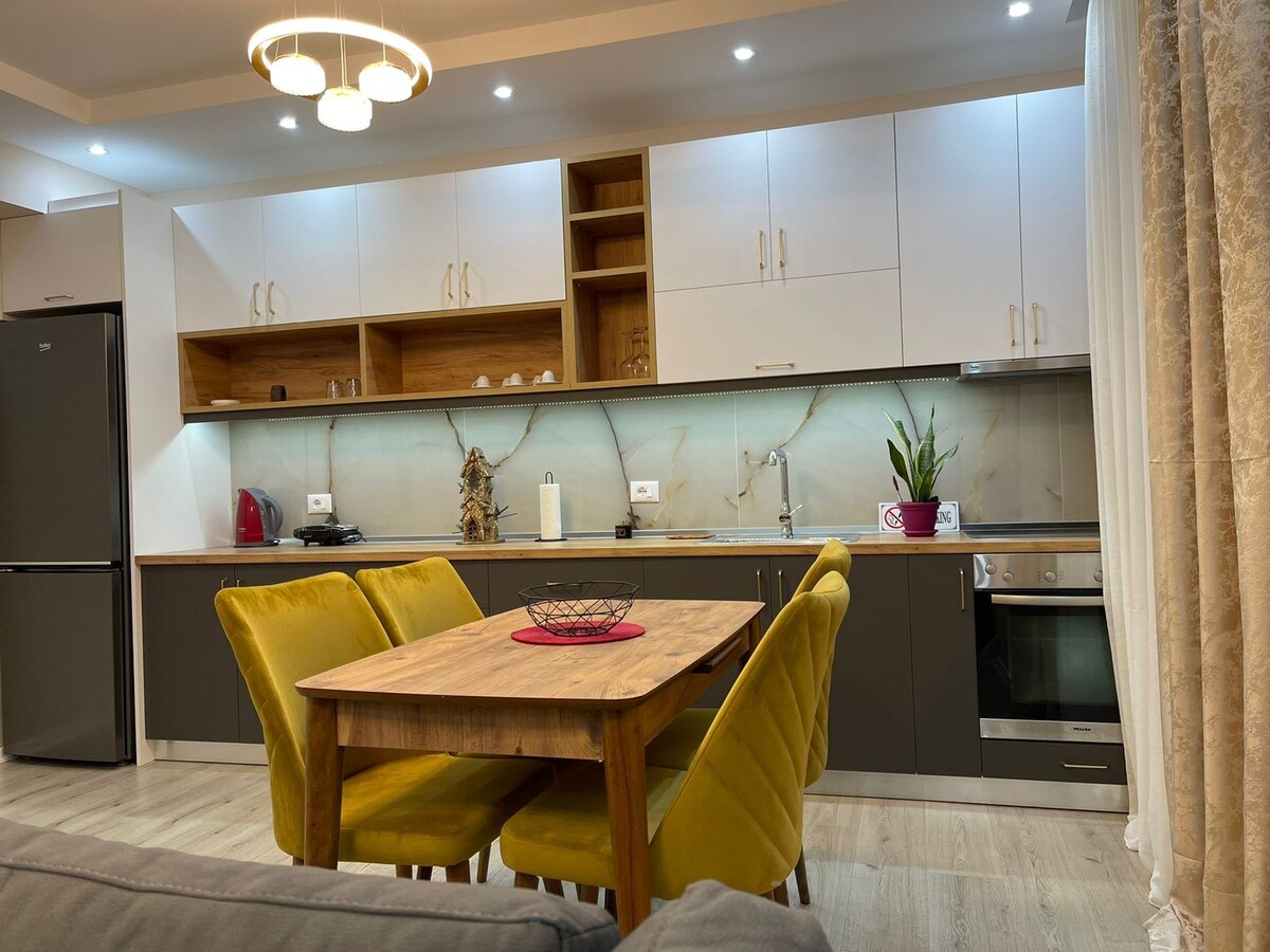 ¡Bienvenido a mi acogedor apartamento de 1 dormitorio ubicado en el corazón de Korçë, la capital cultural del sur de Albania! Ya sea que estés aquí por la historia, la comida local o para explorar el hermoso campo, este elegante apartamento ofrece la base perfecta para tu estancia. El apartamento cuenta con un dormitorio espacioso con una cómoda cama tamaño queen, una moderna sala de estar con un sofá cama (perfecto para huéspedes adicionales) y una cocina totalmente equipada para hacerte sentir como en casa.