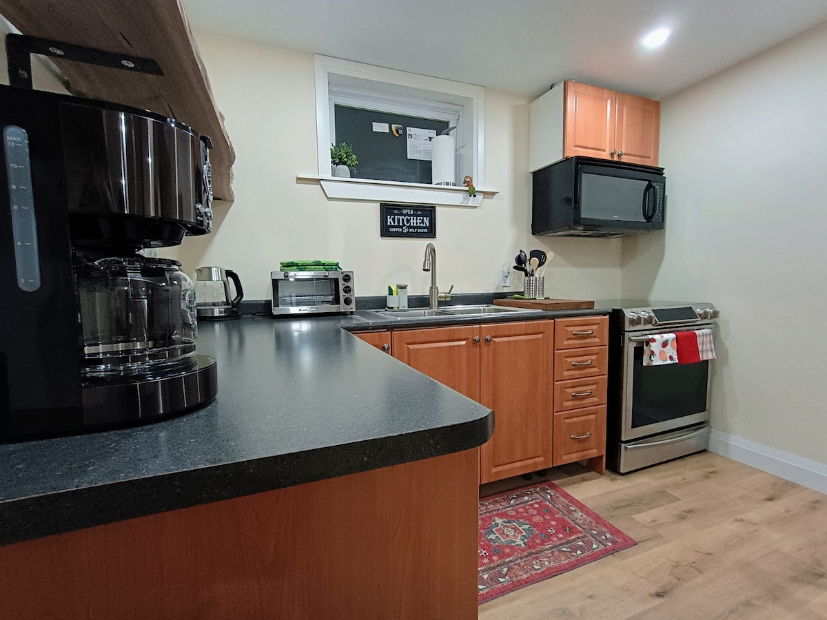 Amplio apartamento independiente de un dormitorio en el sótano. (Entra por la entrada privada en las comodidades necesarias para una estancia ideal a orillas del Grand River en el histórico Fergus, Ontario. A pocos pasos del centro de Fergus y de los senderos para caminar cercanos. A cinco minutos en coche del centro de Elora para explorar muchas tiendas y restaurantes. A 5-10 minutos en coche, disfruta de más belleza de la garganta de Elora, el área de conservación del lago Bellwood o las bodegas Cox Cedar.
