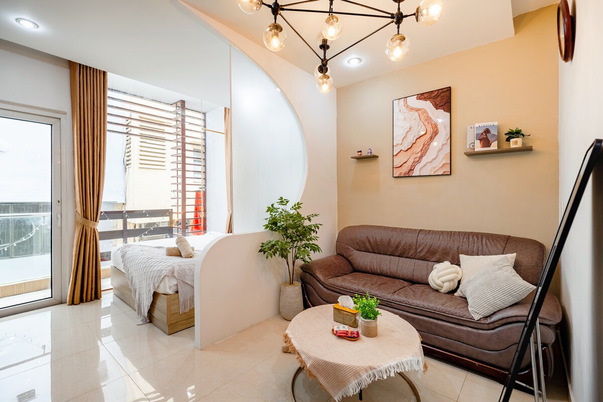 Luminoso estudio con balcón, a 5 minutos del mercado de Ben Thanh