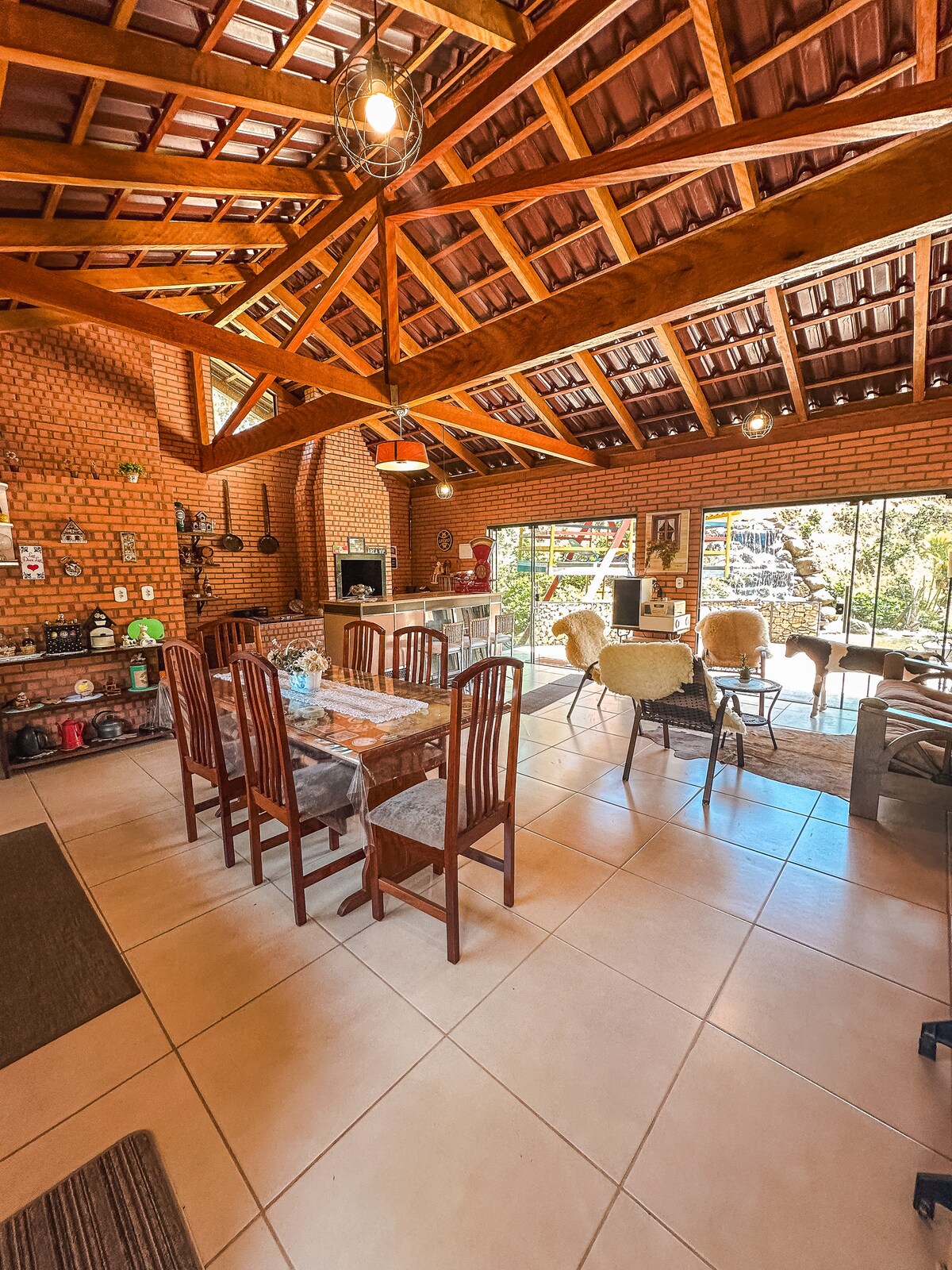 Situado en el camino de los ángeles, en el circuito de Vale Europa, nuestro chalet está a 750 metros de altitud. Clima serrano en el valle de Itajaí. Es el lugar perfecto para aquellos que buscan paz, contacto con la naturaleza y hermosos paisajes. Es posible seguir la rutina de la propiedad, como la cosecha de uva y el maíz, la rutina con los animales, disfrutar bañándose en arroyos y cascadas de agua cristalina, hacer senderos y observar animales de nuestra fauna... Nunca olvidarás tu estancia en este lugar romántico y llamativo.