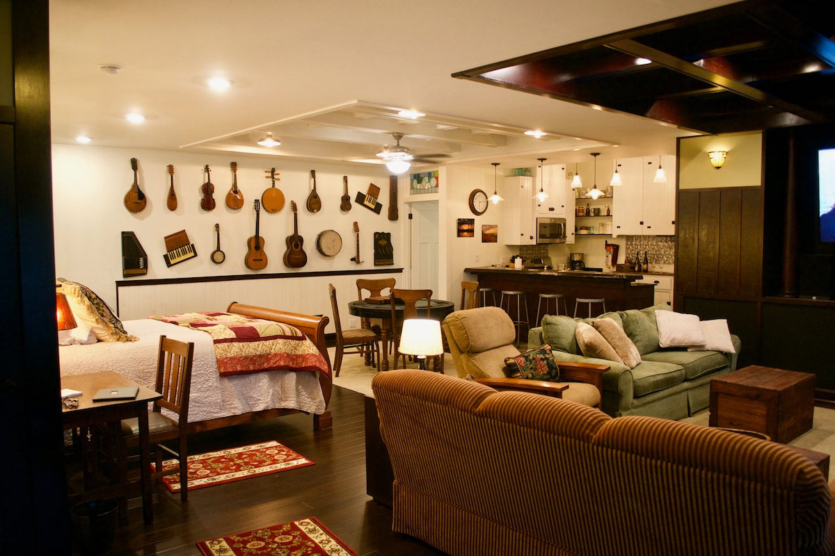 Entrarás en un apartamento estudio grande, lujoso y privado en un hermoso estilo de artes y oficios. * Ubicado en una carretera apartada junto al lago, en el lado este del lago Seneca. * Techos artesonados de diez pies. * En la Ruta del Vino del Lago Seneca. * Damos la bienvenida a los visitantes durante todo el año. Una opción maravillosa para parejas que buscan un lugar privado y tranquilo para escapar. * Muchos detalles hechos a medida. * Se pueden alojar 2 huéspedes adicionales con un sofá cama plegable (con cargo adicional).