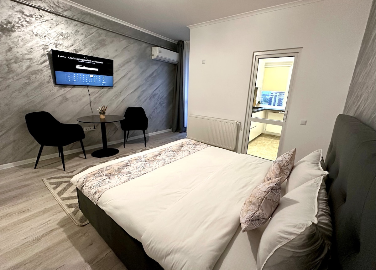 We are inviting you to escape the city buzz and unwind in this modern, fully-equipped Studio apartment nestled in the western suburbs of Bucharest. Perfect for couples, small families, group of 4 or business guests, this cozy place offers all the comfort you need for a relaxed stay. Located in a residential area with easy access to public transport, shops, cafes and urban accessibility. Please message us if you have any questions or you are not fully decided to stay with us.