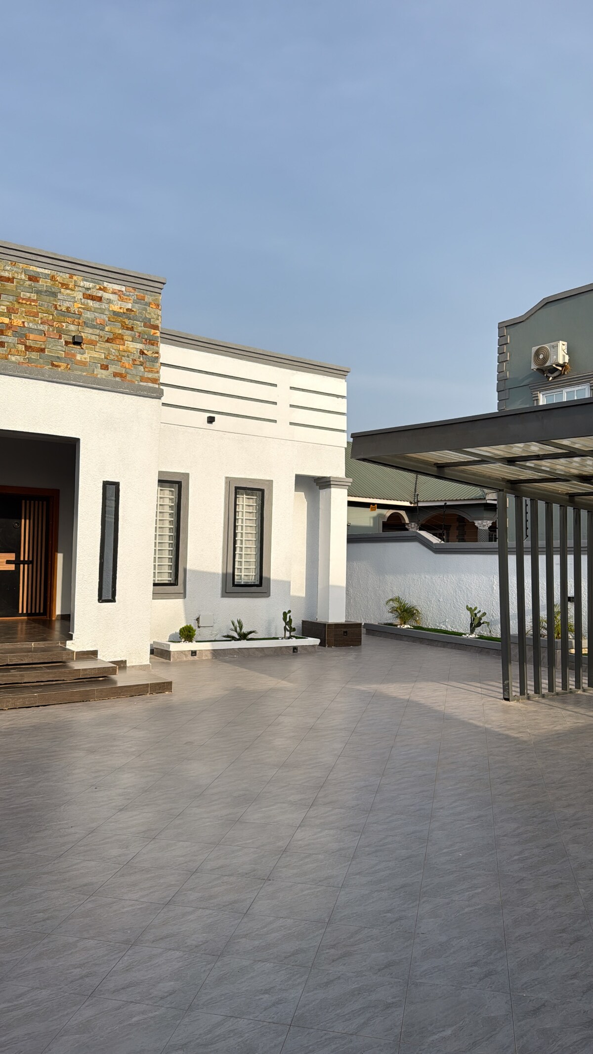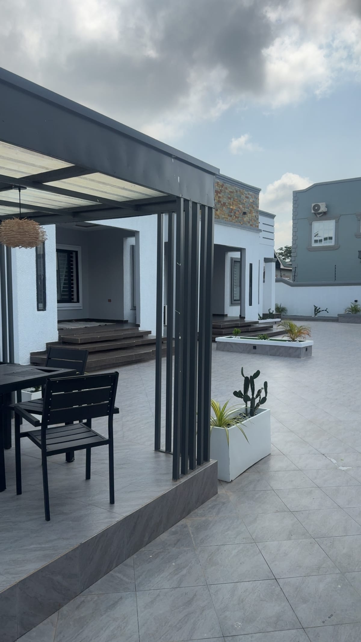 This is a 3 bedrooms apartment. You get 3 big bedrooms with king size comfortable beds. Bedrooms have en-suite bathrooms with water heaters. You have your own kitchen fully stocked with all u need to cook including fridge. You have a large living room with a large smart tv. A dining table and 4 chairs in the living room. Unlimited Starlink WiFi for all your internet usage. All bedrooms and living rooms have Air conditioners with balcony.