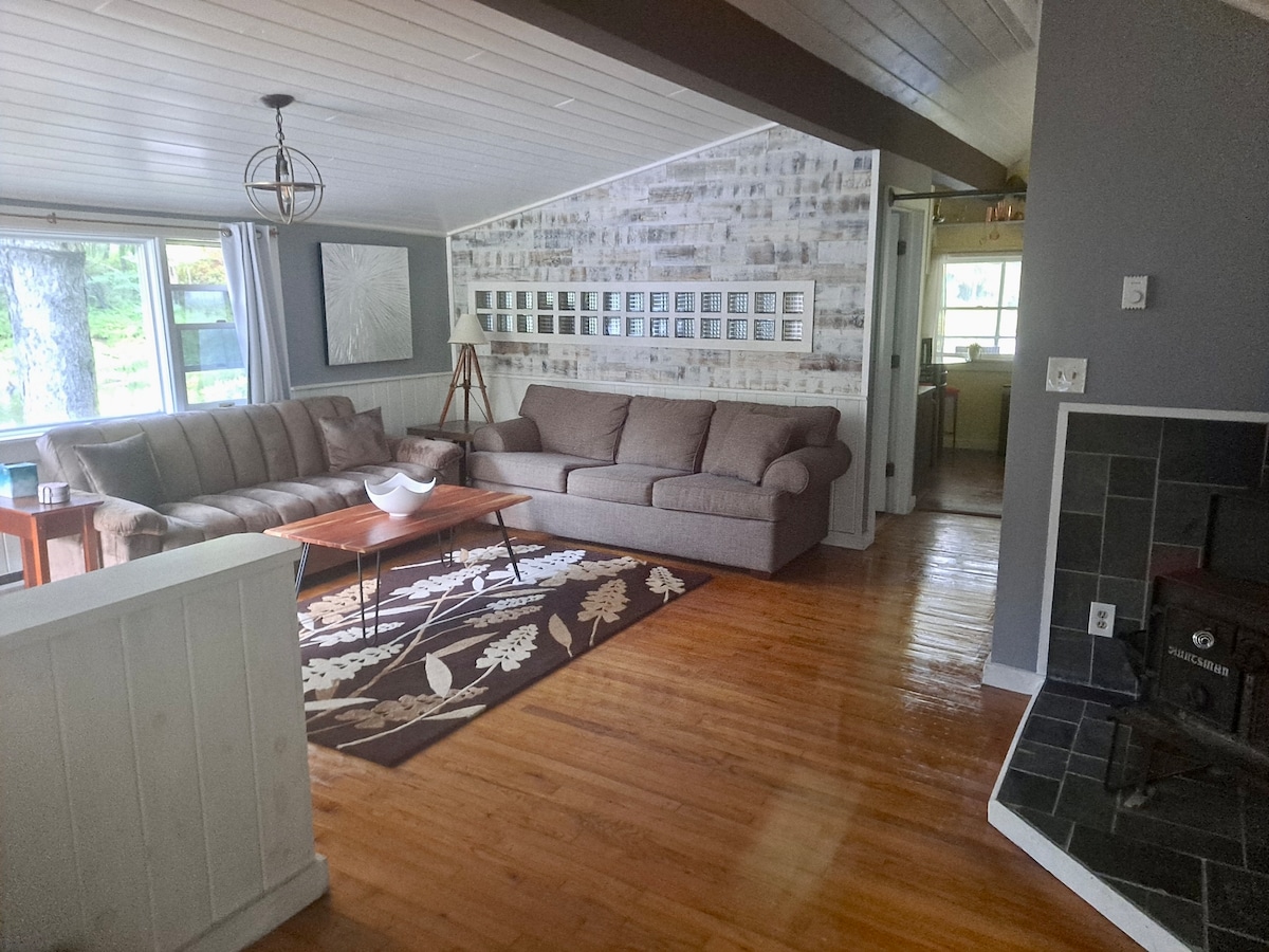 Totalmente amueblada y remodelada con nuevas mejoras en la primavera de 2025, incluyendo una suite principal con baño completo. Nuestra casa de campo privada se encuentra en una península en una cala donde un arroyo de truchas entra en el lago. Increíble cantidad de vida silvestre, especialmente todo tipo de aves. El alojamiento tiene vistas soleadas por todas partes. Las malezas de temporada crecen en el lago adyacente, lo que puede afectar las actividades acuáticas, especialmente en los meses de verano. Capacidad para 6 personas. Hay dos baños completos y un medio baño.