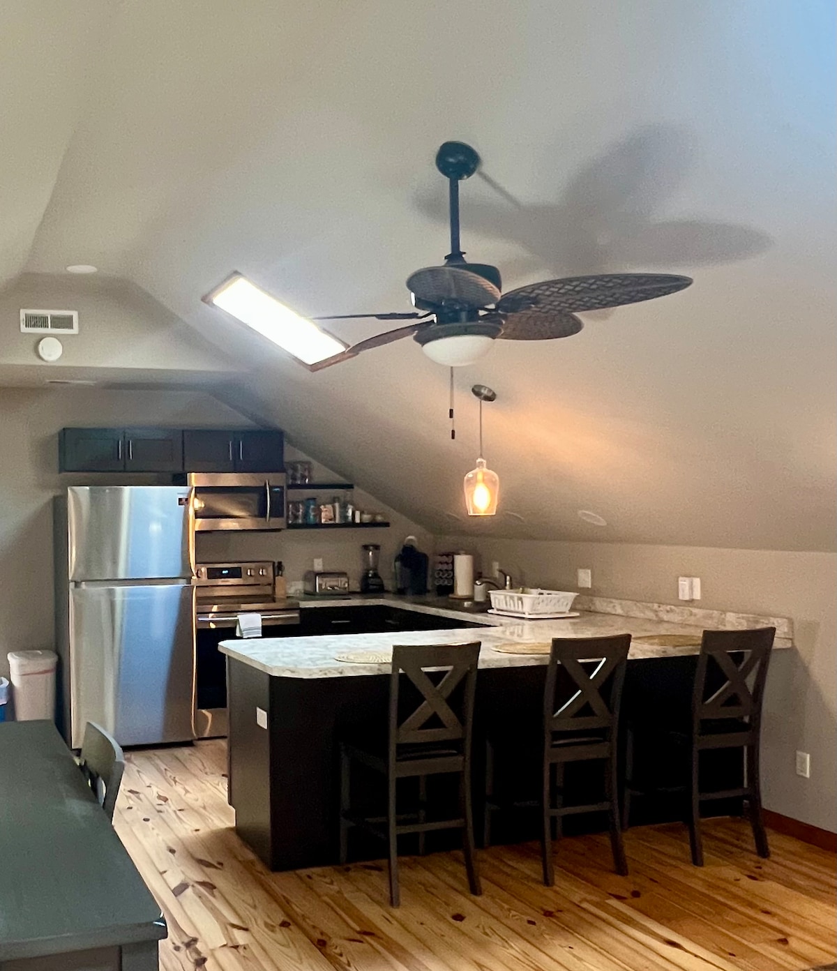 Nunca has visto la costa así. Bienvenido a Edgewater Escape, un lujoso apartamento loft frente a la bahía que cuelga completamente sobre la bahía en 7th Street en el centro de Ocean City. Siéntate en el porche delantero de la bahía o pasa el rato dentro y observa barcos, delfines, pájaros y, a veces, incluso focas nadando a pocos pies del porche. El loft tiene una espaciosa cama tamaño king y el sofá de abajo se convierte en una cómoda cama tamaño queen. Recientemente renovado, viene totalmente equipado para tu gran viaje o estancia tranquila:)