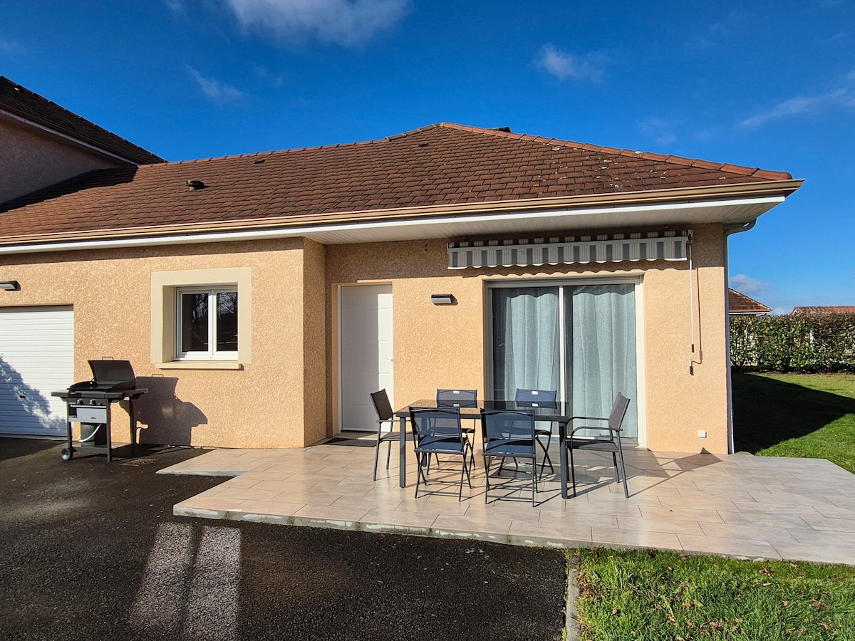 Ubicada en el corazón de Uzein, esta casa renovada de una sola planta combina comodidad y accesibilidad. Con 3 amplios dormitorios, una cocina totalmente equipada y una luminosa sala de estar, es ideal para familias, profesionales o PRM. Disfruta de un jardín tranquilo con muebles de exterior y barbacoa. Ubicado a 5 minutos del aeropuerto y a 15 minutos de Pau, ofrece acceso rápido a todos los servicios. Cerca: estadio de la ciudad, parque infantil y mesas de ping-pong. Estacionamiento gratuito. ¡Reserva tu estancia ahora!