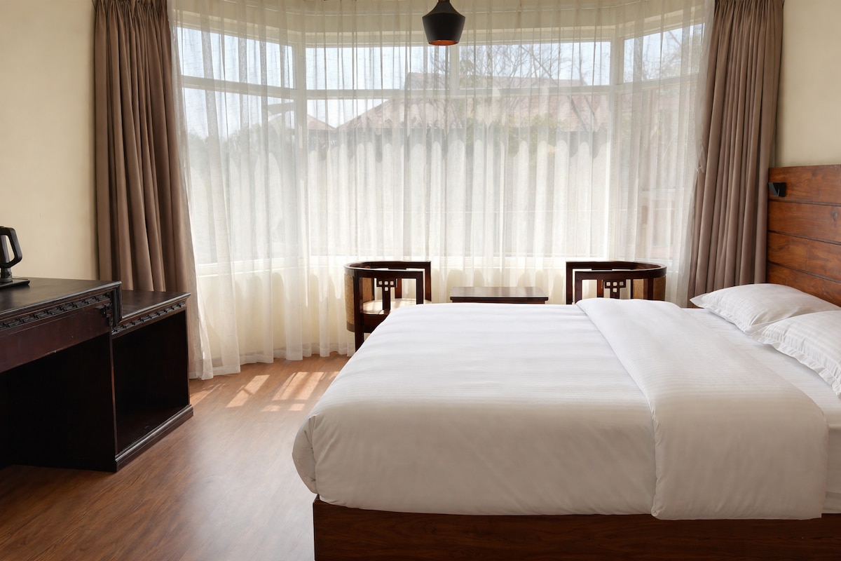Relájate en una acogedora habitación queen con baño privado, perfecta para viajeros solitarios o parejas. Estamos justo en Thamel, por lo que estás cerca de excelentes restaurantes, tiendas y lugares de interés locales, pero escondido lo suficiente para pasar una noche tranquila y relajante.
