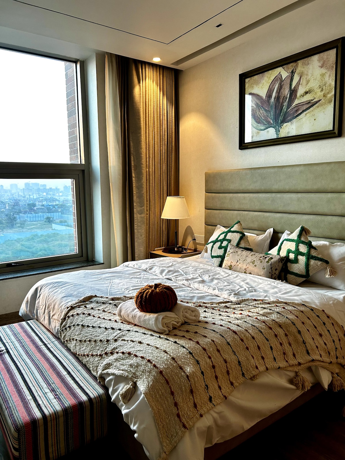 Bienvenido a esta otra propiedad de lujo de Tulip Homes que está situada en el piso 12 de un edificio de gran altura. El amplio patio con jardín y el jacuzzi de 2 plazas lo hacen único en la clase. El lugar es perfecto para relajarse y disfrutar de una vista panorámica de la arquitectura moderna. El apartamento está cargado con televisión inteligente (todas las aplicaciones funcionan), gran pared de espejo, una acogedora cama doble, un cómodo columpio, elegante sofá con mesas de centro de anidación centrales, nevera, microondas, inducción, hervidor eléctrico, tostadora, plancha y muchos más.