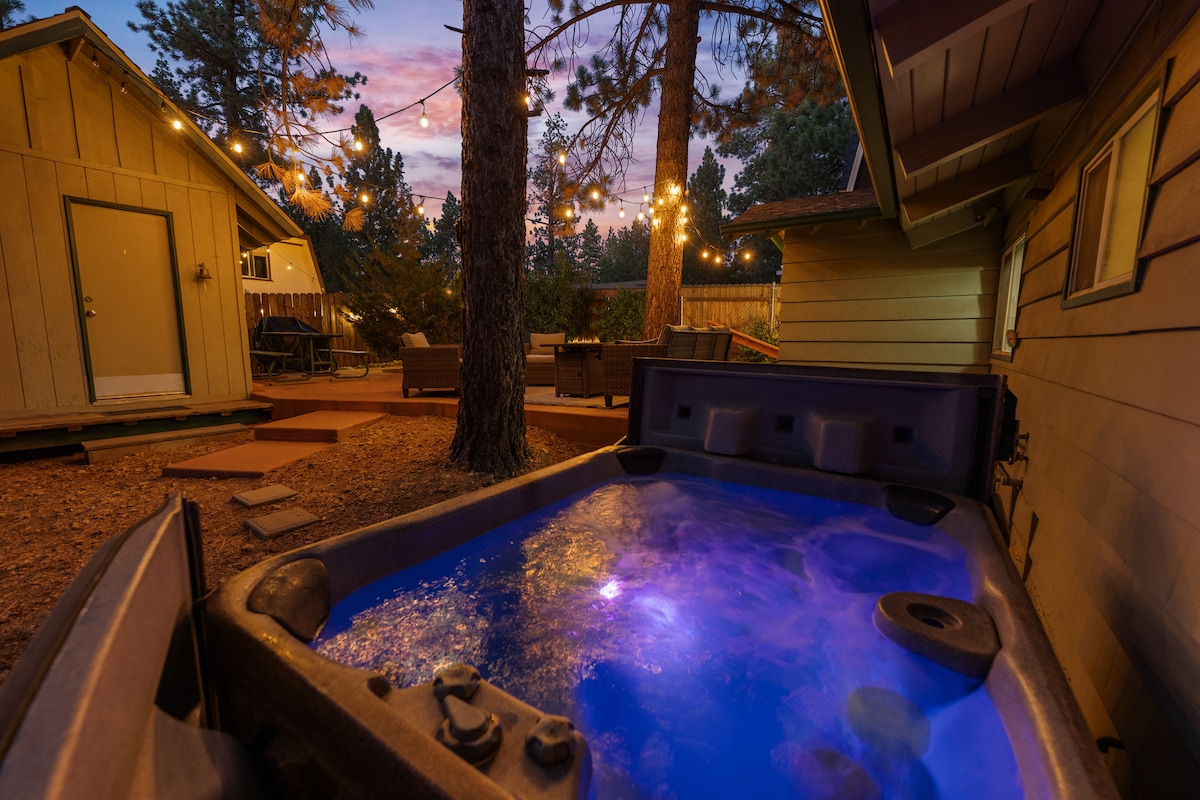 Cabaña romántica Big Bear con spa, estacionamiento para vehículos eléctricos y patio cercado