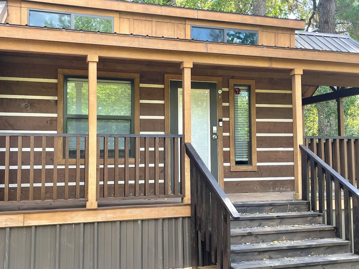 Ven a relajarte en este alojamiento recién renovado enclavado en el bosque del este de Texas. Este acogedor y elegante albergue ofrece la privacidad que buscas sin dejar de estar convenientemente ubicado para ir a restaurantes y atracciones con fácil acceso a la Interestatal 20. Te sentirás cómodo en esta pintoresca cabaña que cuenta con una gran cocina, cama tamaño king, internet de alta velocidad, chimenea al aire libre y está equipada con todas las necesidades.