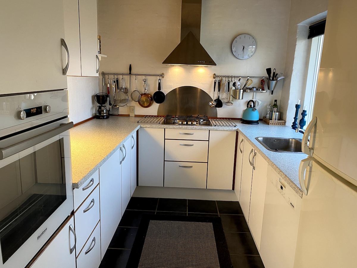 Hermosa casa de 150 metros cuadrados, con estufa de leña y leña. Lavavajillas y lavadora disponibles. Hay una terraza privada. Cerca de Legoland, Legohouse, Givskud Løvepark, Lalandia, wow park y el aeropuerto de Billund. Vivimos en un pueblo tranquilo con su propio prado y arroyo, donde hay posibilidad de pesca. Hay una cama elástica en el jardín, que se puede utilizar bajo su propia responsabilidad. Hay bloques de LEGO, dardos y airhockey para uso gratuito. Posibilidad de cargar el coche eléctrico de 400 voltios previo pago. Solo perros con cita previa, no se admiten gatos.