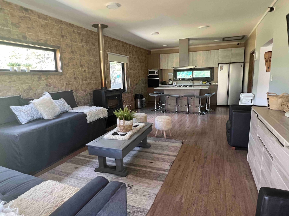 Relájate con la familia, pareja o amigos en este alojamiento donde la tranquilidad se respira. La tarifa es a partir de 2 personas, luego hay un adicional por huésped extra con un máximo de 5 huéspedes en total. Cualquier duda consultar por mensaje. Es un lugar con flora y fauna nativa, cuenta con piscina, apto para mascotas, casa autosustentable y goza de una vista maravillosa que no querrás regresar a la ciudad!