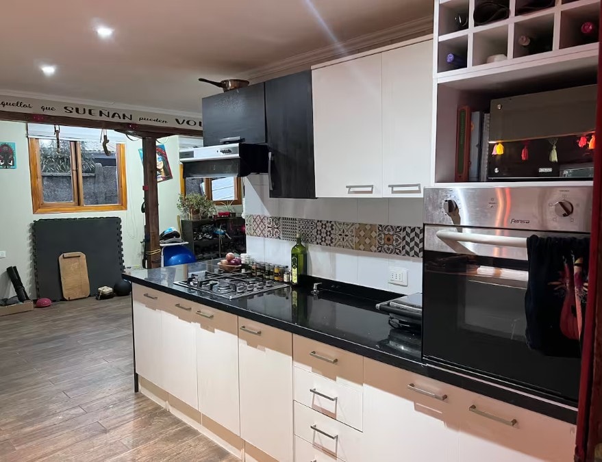 es una casa principalmente en arriendo para empresas, pero siempre se pueden hacer excepciones, está ubicada en un barrio tranquilo por lo cual no es para fiestas. Si no que para descansar y recuperar fuerzas para continuar con tu viaje. está equipada para un máximo de 5 personas, loza, vasos servicio, refrigerador cocina, lavadora.