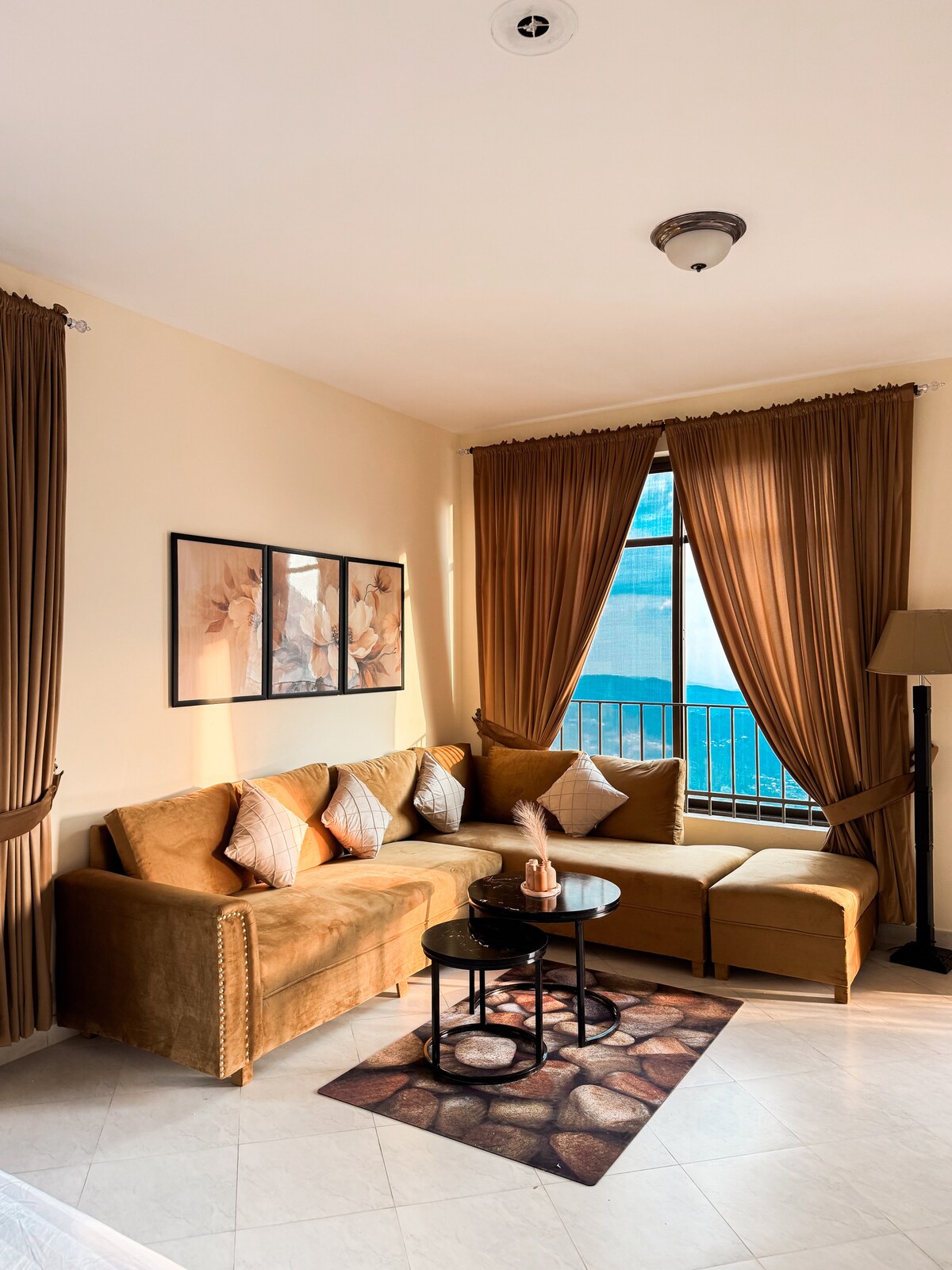 Welcome to your luxurious 2BR retreat in Murree! • 🌄 Panoramic Views & Ethnic Sunroom • 📍 Each and Every Major Attraction, Café & Restaurant Within 10 Mins • 🍽 Fully Equipped Kitchen • 🛏 Elegant Bedrooms, Cozy Lounge • 🚗 Main Road Access & Gated Parking • ❄ Snow Cleared Every 15 Mins, Snow Chains Available • 👨💼 Dedicated 24/7 Caretaker • 🥐 In House Chef • ☕ Subway, Dunkin’ Donuts at walking distance • 📐 Sprawling 2,800 sqft with only 2 bedrooms — exceptionally spacious
