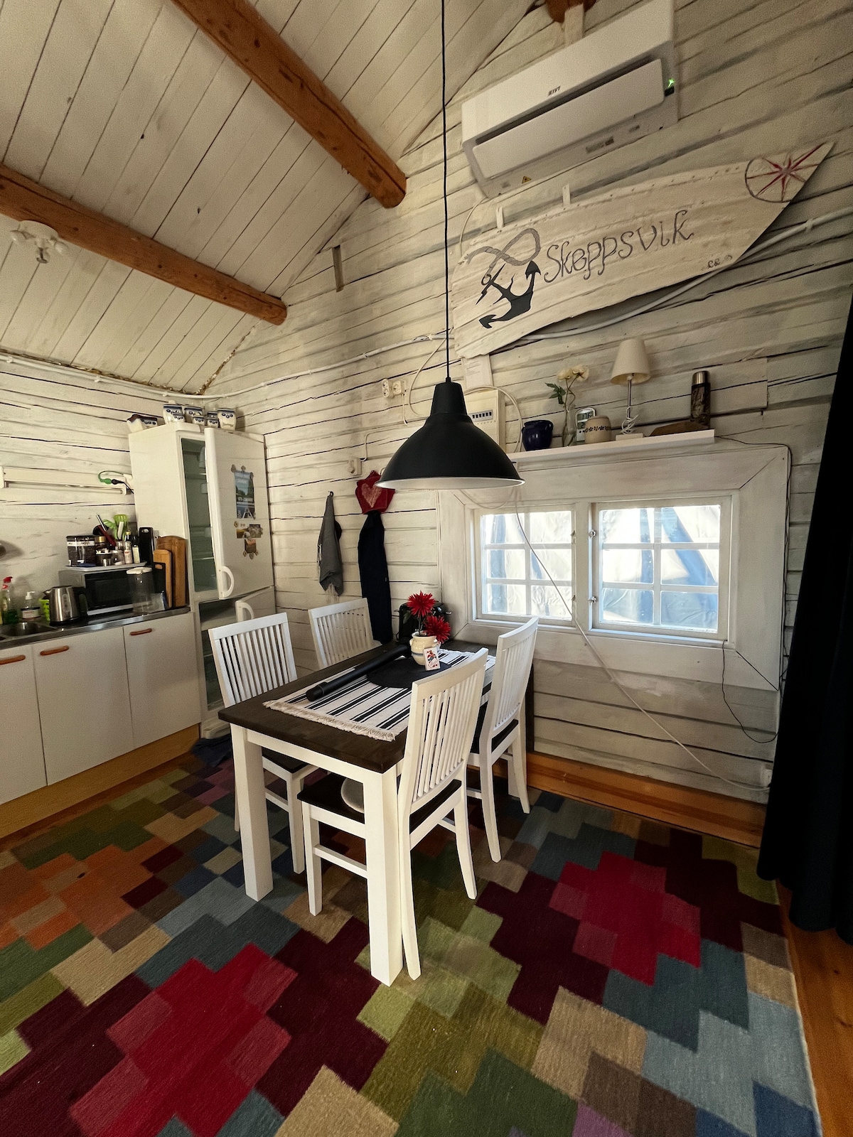 Almacén de más de 100 años en un pequeño pueblo en el archipiélago de Maxmo en Vöyri. El ambiente es tranquilo y silencioso en el pueblo. El lugar está a 10 km del centro local y a 40 km del centro de la ciudad de Vaasa, la capital del condado de Pohjanmaa/Österbotten. La región es de aproximadamente 50:50 bilingüe finlandés-sueco, pero el archipiélago es casi 100 % de habla sueca. Muchas personas hablan ambos idiomas. El inglés es un idioma común extranjero. Te mueves muy bien con el inglés.