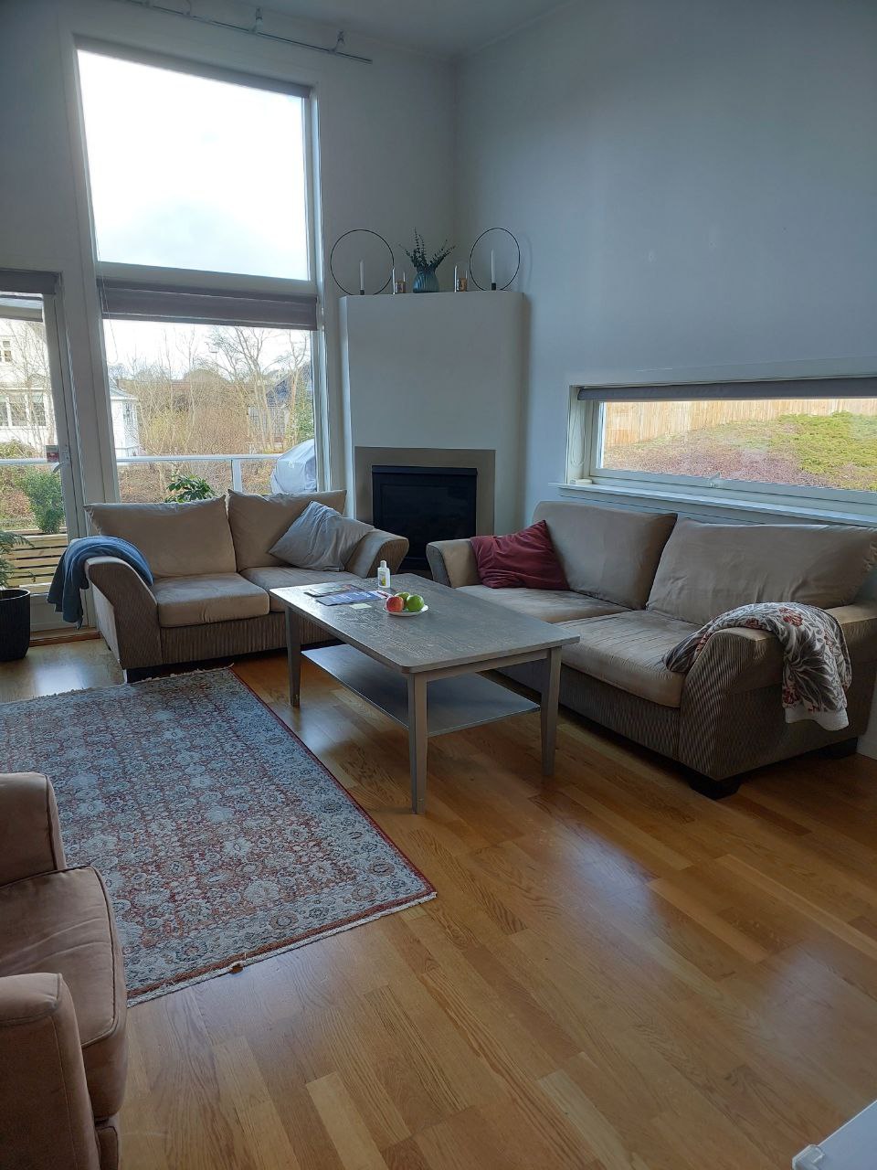 Apartamento de unos 80 metros cuadrados por Lekvenvågen. Dormitorio 1, cama matrimonial pequeña de 120. Dormitorio 2, cama individual de 90. Dormitorio 3, cama de día que se puede sacar a 180. Lavadero pequeño. Porche con una mesa de comedor exterior para 4 personas. Parada de autobús a menos de 10 minutos a pie. El aeropuerto está a 20 minutos en coche, 45 minutos en transporte público dependiendo del tráfico. Tienes que cambiar de tren ligero a autobús en el centro comercial, Lagunen, pero están justo al lado del otro. Centro de la ciudad de Bergen a 25 minutos en auto, a 50 en autobús.