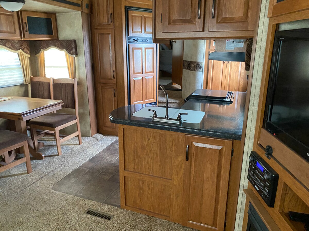 Reconnect with nature in this spacious 32ft 5th wheel! With 2 large slides, a private queen bedroom, and a full-size pullout bed, it’s the perfect Black Hills retreat. Enjoy all the amenities of home plus an outdoor fire pit with complimentary firewood included. Perfectly located near Custer, it’s your cozy home base for Mount Rushmore, Custer State Park, and Jewel Cave. Clean, quiet, and ready for your stay!