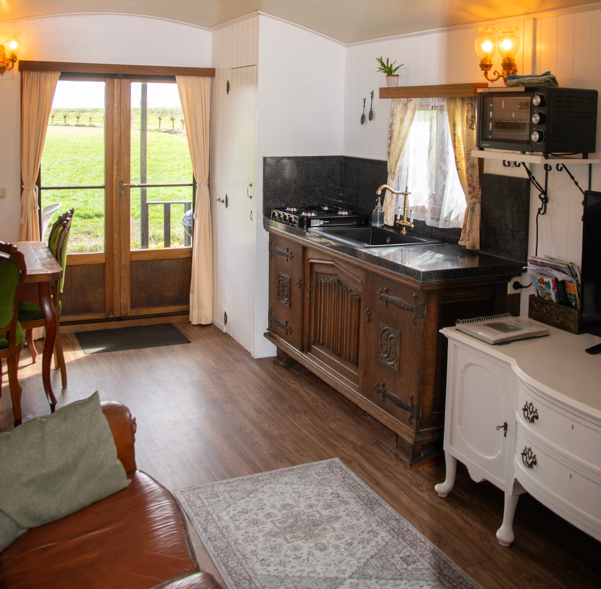 Amplio, completo, vagón Pipo vintage con baño, inodoro y cocina en el vagón. Cama romántica, cómodo sofá, TV con Netflix y Prime. Todo esto en un entorno rural tranquilo. Todo lo que necesitas para relajarte y descubrir la reserva natural del Weerribben-Wieden. Giethoorn está a solo 20 minutos en auto. La piscina (compartida) está disponible en verano. El jacuzzi se puede reservar por separado por € 30 por 2 horas. Además, alquilamos bicicletas y un tándem vintage.