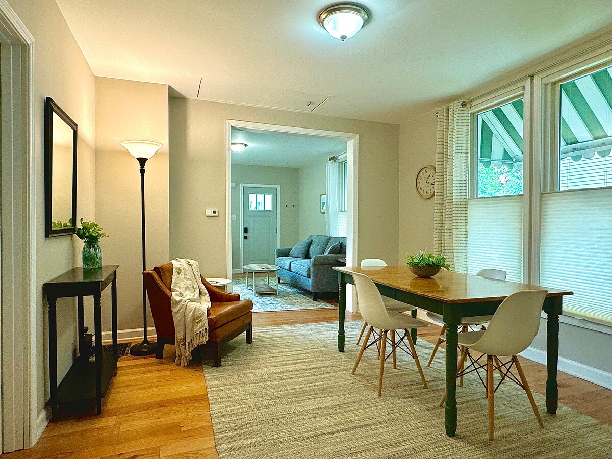 Cozy home with Plenty of Space for a relaxing getaway, business trip or family & friend events! Host birthdays, graduations, wedding showers, or holiday gatherings in comfort and privacy. If more space is needed for larger groups, the home immediately next door to this one also sleeps 10 and may be available, message me on this if needed! Fenced in yard, 1/2 mile from uptown for shopping and dining, 1/2 mile from the Constitution Trail. Location, comfort & space are guest favorites!