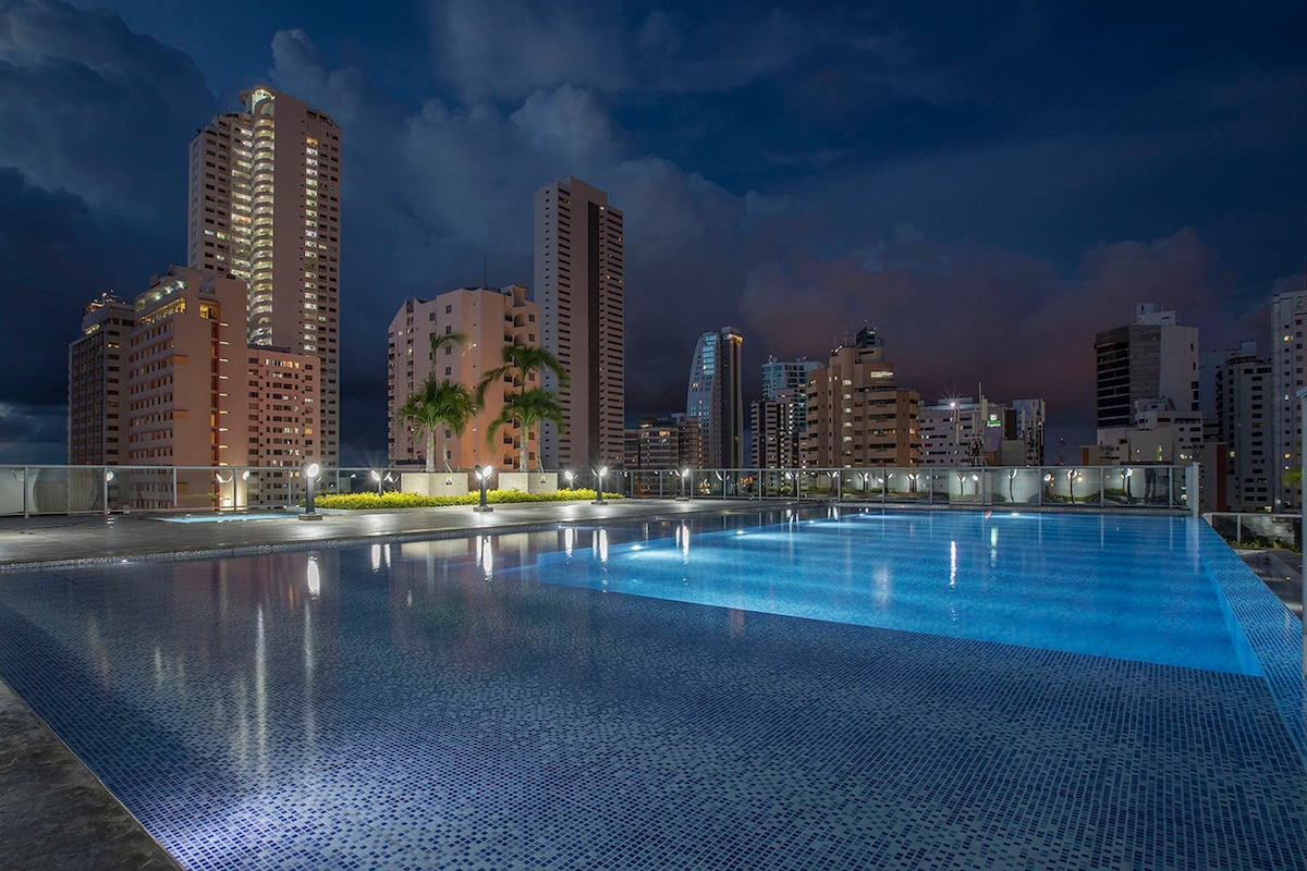 Impresionante piscina en piso 27 con vistas al mar y ciudad. Apto. moderno de 2 alcobas y 2 baños en edificio nuevo con amenidades. Luminoso con aire acondicionado en todos los espacios, 2 Smart TV y balcón privado. Wi-Fi rápido, ideal para trabajo remoto o relax. A 150 m de la playa y a solo 13 min del Centro Histórico. Perfecto para familias o 2 parejas, hasta 6 huéspedes. No visitas ni cambios tras check-in. Piscina y áreas comunes pueden entrar en mantenimiento sin previo aviso.