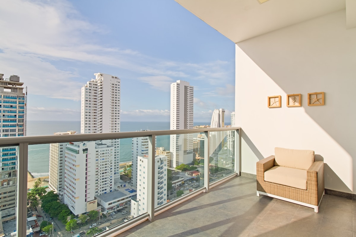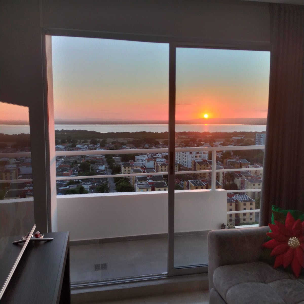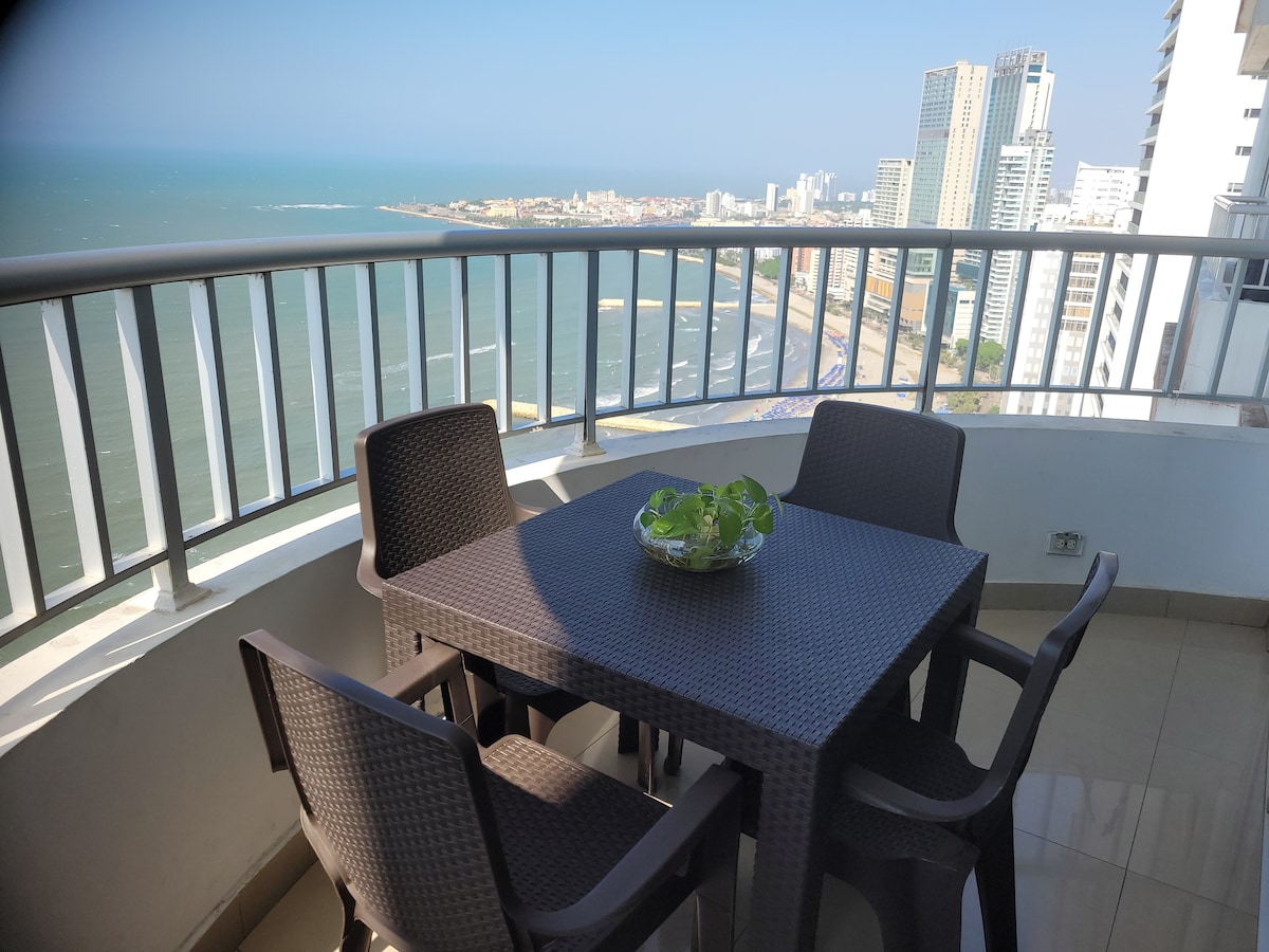 Disfruta de las mejores vistas desde un piso 33. Excelente ubicación, cerca de restaurantes, centros comerciales, supermercados como Carulla, Olímpica y D1. Tiene las tres vistas, al mar, a la ciudad y a la bahía de Cartagena. Mi favorita es la de la ciudad, es como dormir en un viewpoint. No están permitidas las visitas.