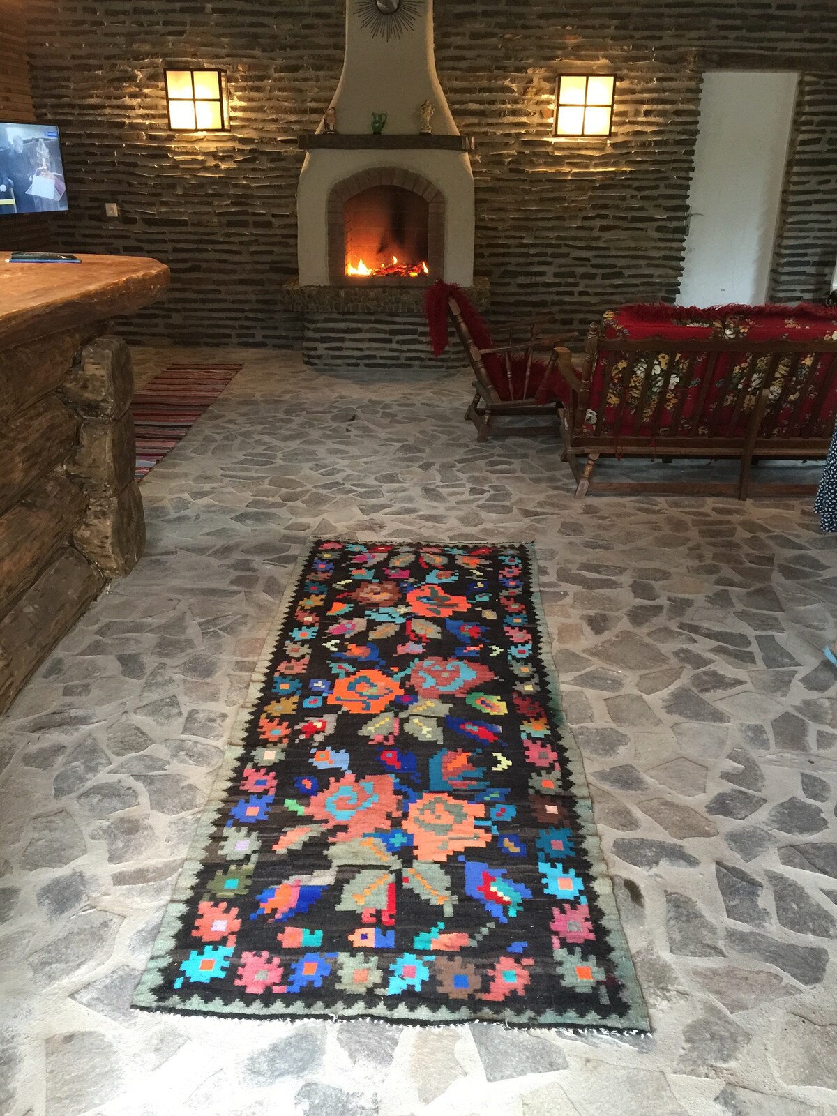 Cabană tradițională cu suflet, ascunsă într-un colț liniștit, această cabană te invită să te reconectezi cu lucrurile simple și frumoase. Lemnul vechi, ușile vopsite în verde blând, textilele tradiționale și obiectele lucrate manual creează o atmosferă caldă, intimă, în care fiecare detaliu spune o poveste. Interiorul este primitor și luminos, cu finisaje naturale și piese de mobilier alese cu grijă, care oferă confortul de care ai nevoie pentru un sejur relaxant.