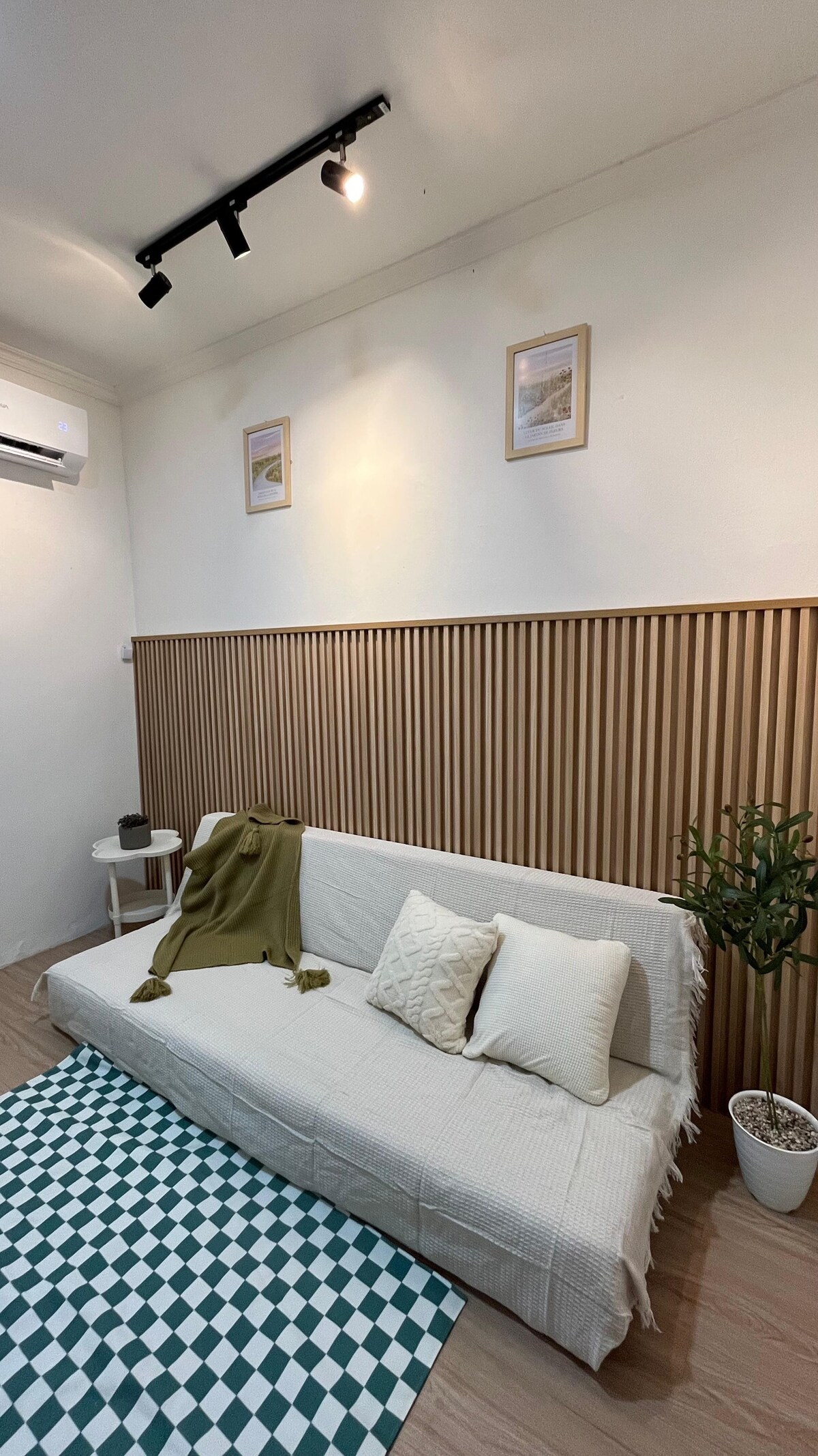 Relájate y desconecta en este alojamiento tranquilo de estilo industrial minimalista. Instalaciones: 1. Cerradura inteligente de la puerta 2. Wifi gratuito 3. Cómodo escritorio 4. Mininevera 5. Calentador de agua 6. Hervidor de agua caliente (+ café, té y azúcar gratis) 7. Estufa + olla, sartén y platos 8. Smart TV de 43 pulgadas (incluye Netflix) 9. Aire acondicionado 10. Plancha 11. Secador de pelo. 12. Artículos de aseo 13. Agua potable (galón) 14. Balcón (horizontes de la ciudad + vista del amanecer)