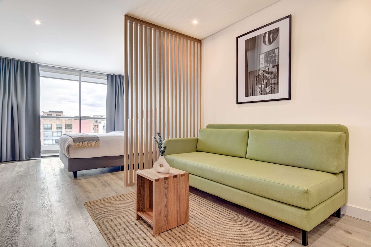 ✨ Vive la experiencia en el sector más exclusivo de la ciudad. Cada rincón está diseñado para cautivarte: 🌆 terraza privada, 🛋️ mobiliario premium y 🛏️ cama de máximo confort que invitan al descanso. Su ambiente sofisticado y tranquilo es ideal para escapadas especiales o estadías largas con total comodidad. Este contemporáneo apartamento se encuentra a pocas cuadras del Parque de la 93, rodeado de lo mejor de Bogotá.