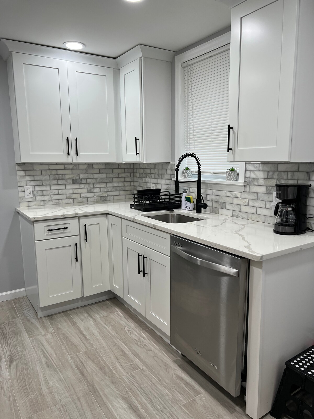 Reserva este moderno apartamento de un dormitorio recién reformado. 1 dormitorio con cama tamaño queen, TV y cómodas. Futón cama extra convertible. Cama plegable doble adicional. Amplio salón con sofá elegante, mesa de centro de mármol y 2 sillas. Mesa de comedor elegante. Cocina nueva con salpicadero de mármol, suelos de porcelana y electrodomésticos de acero inoxidable. Baño nuevo y moderno con azulejos de mármol y suelo de porcelana. Suelos de madera en el salón, comedor y dormitorio. Estacionamiento gratuito para 1 coche. Barrio arbolado seguro. A 1/2 hora en coche o autobús de Times Square NYC.