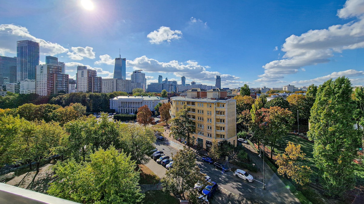 Un moderno apartamento de 40 m2 con aire acondicionado y ventanas con vistas a los edificios de oficinas comerciales cercanos en el centro de Varsovia, creando una impresionante iluminación nocturna. Es un lugar único donde las bulliciosas calles con restaurantes y pubs de moda entran en contacto con lugares atmosféricos llenos de historia: los restos de fábricas de antes de la guerra o casas de viviendas judías del gueto.