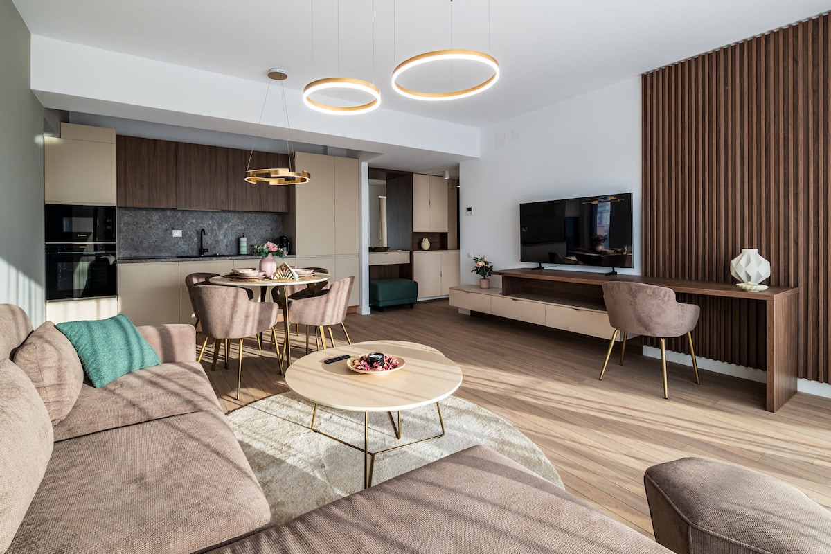 Disfruta de una experiencia elegante en esta céntrica residencia en Militari Residence. Este apartamento cuenta con los siguientes servicios: Aparcamiento privado con barrera Paredes decoradas con Stucco Veneziano Televisión inteligente 4K con Netflix y aire acondicionado El complejo ofrece: piscinas cubiertas y al aire libre, saunas húmedas y secas, jacuzzi y un gimnasio. La distancia al centro de bienestar es de 500 m, y a Aqua Garden está a 550 m, aproximadamente a 7 minutos a pie. El precio del acceso a la piscina es de 70 RON por persona.