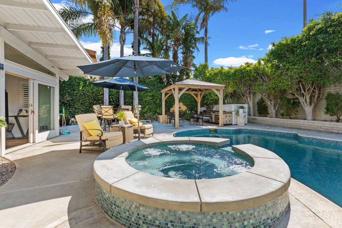 2 bungalows + 2 baños a solo ½ milla de la playa, HB Pier y Main St! El bungaló principal tiene una cocina completa, un rincón de comedor incorporado, un sofá cama tamaño queen y una silla para dormir doble. El segundo bungalow ofrece una cama tamaño queen, cocina pequeña, mesa para dos, sofá y TV. Un amplio patio privado conecta ambos con comedor, barbacoa, toldos y un acogedor salón con chimenea. Incluye una plaza de aparcamiento fuera de la calle, perfecta para compartir con familiares o amigos mientras disfrutan de Huntington Beach.
