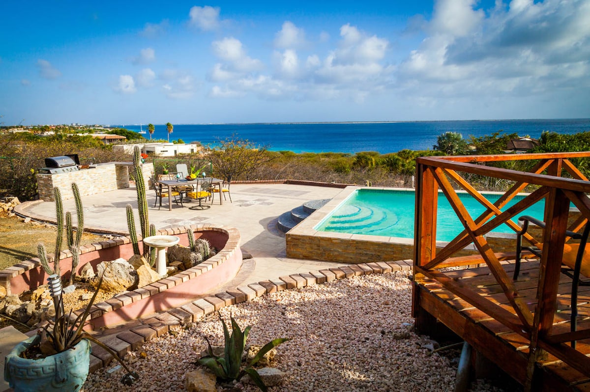 Disfruta de todo lo que Bonaire tiene para ofrecer en esta villa única con una privacidad inigualable. La casa fuera de la red se encuentra en medio de la naturaleza, a pocos minutos del mirador más hermoso de Bonaire, Seru Largu. Las vistas desde la terraza de la piscina a través del hermoso paisaje desértico de Bonaire son espectaculares e increíblemente raras, y la brisa refrescante sopla constantemente para mantenerte fresco. Relájate en la piscina de magnesio mientras disfrutas de las vistas y del extenso jardín, hogar de muchas de las aves más populares de Bonaire.