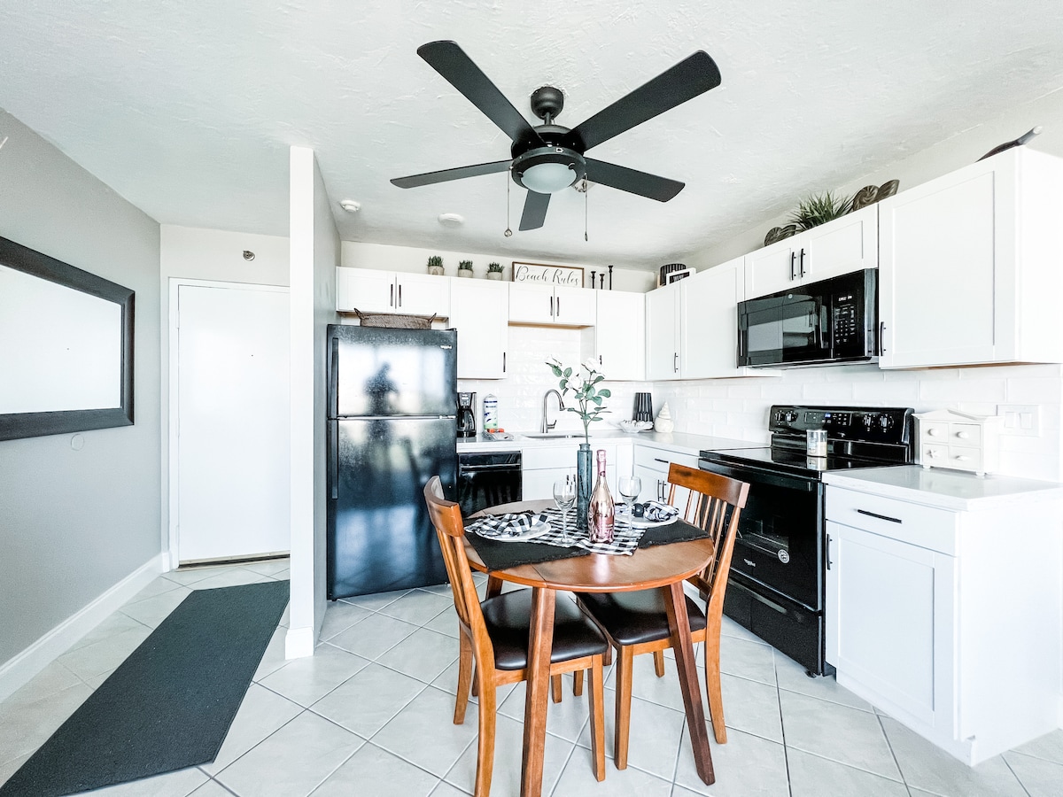 ¡Playa a pocos pasos de este condominio bellamente remodelado! Alquiler de restaurantes y motos acuáticas de DOC, justo al otro lado de la calle. Equipo de playa disponible junto con un carrito para transportar. Lujosa cama tamaño king con colchón extra de felpa. Sofá cama tamaño queen. Nuestro estudio tendrá capacidad para 3 personas (2 adultos, 1 niño). Piscinas recientemente renovadas abiertas el 2 de abril de 2025.