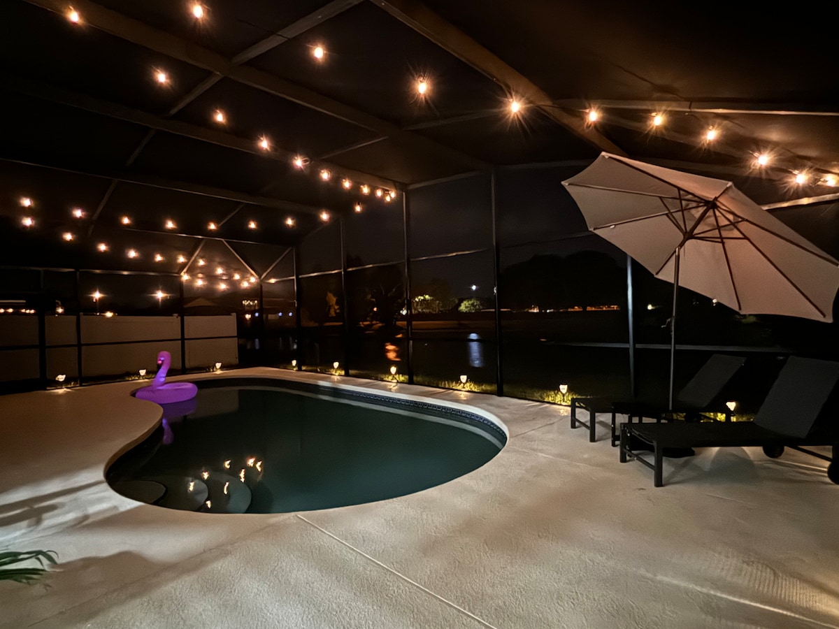 Experience a quiet waterfront villa, this stunning property offers breathtaking views, luxurious amenities, and prime location for your getaway. Relax by the pool enjoying the unwind lake view, With spacious interiors, modern furnishings, and impeccable attention to detail. Whether you're seeking relaxation or adventure, is your perfect vacation home. Book your stay at our stunning home and create unforgettable memories with your loved ones. NO PARTIES/NO SMOKE $50 pet fee $35 pool heater fee
